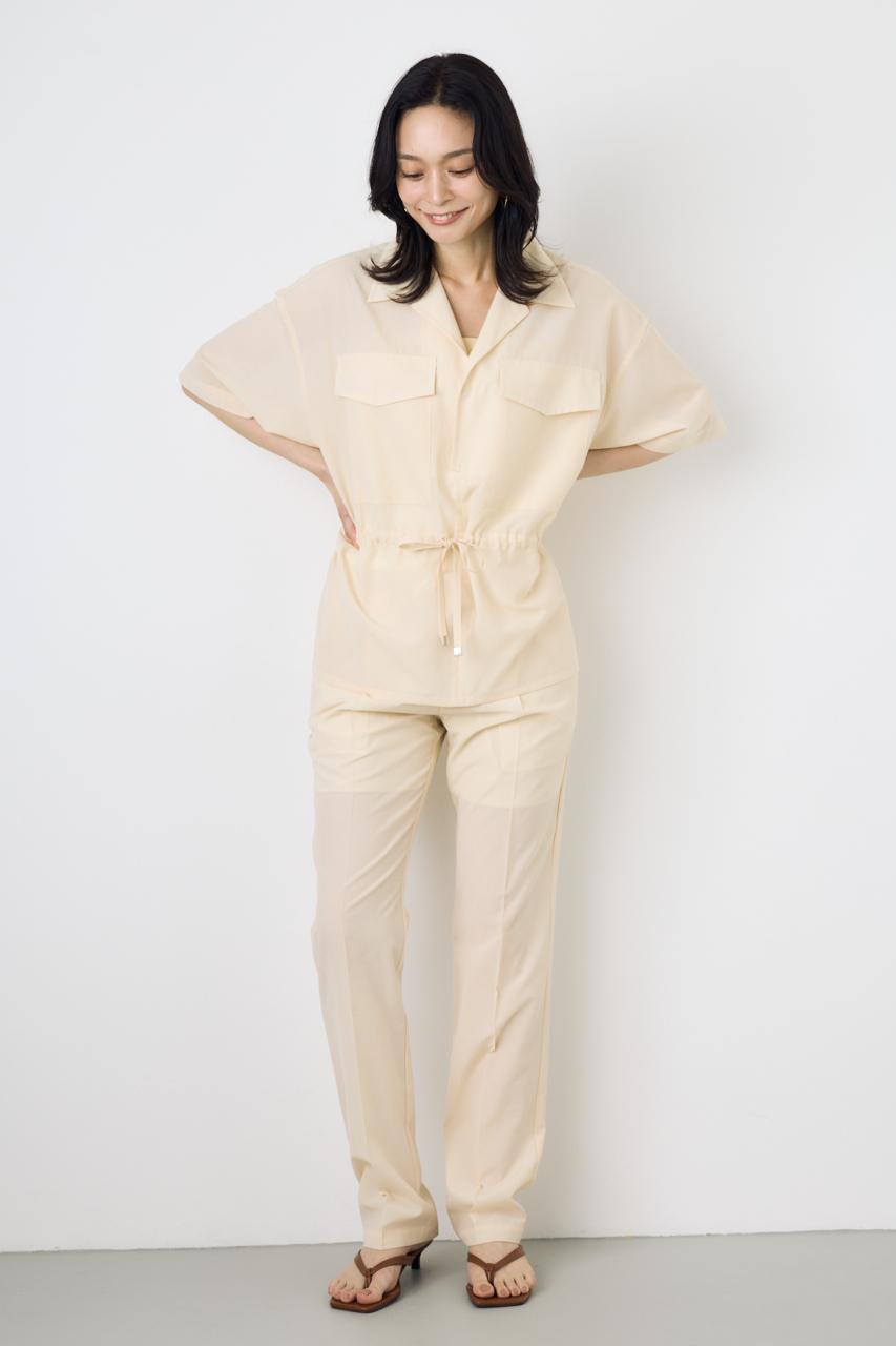 同素材のブラウス(250JSH30-6771 COMFORA AIRウエストマークブラウス)や(250JSB30-1991 COMFORA AIRハーフスリーブジャケット)を合わせるとセットアップで着用可能です。