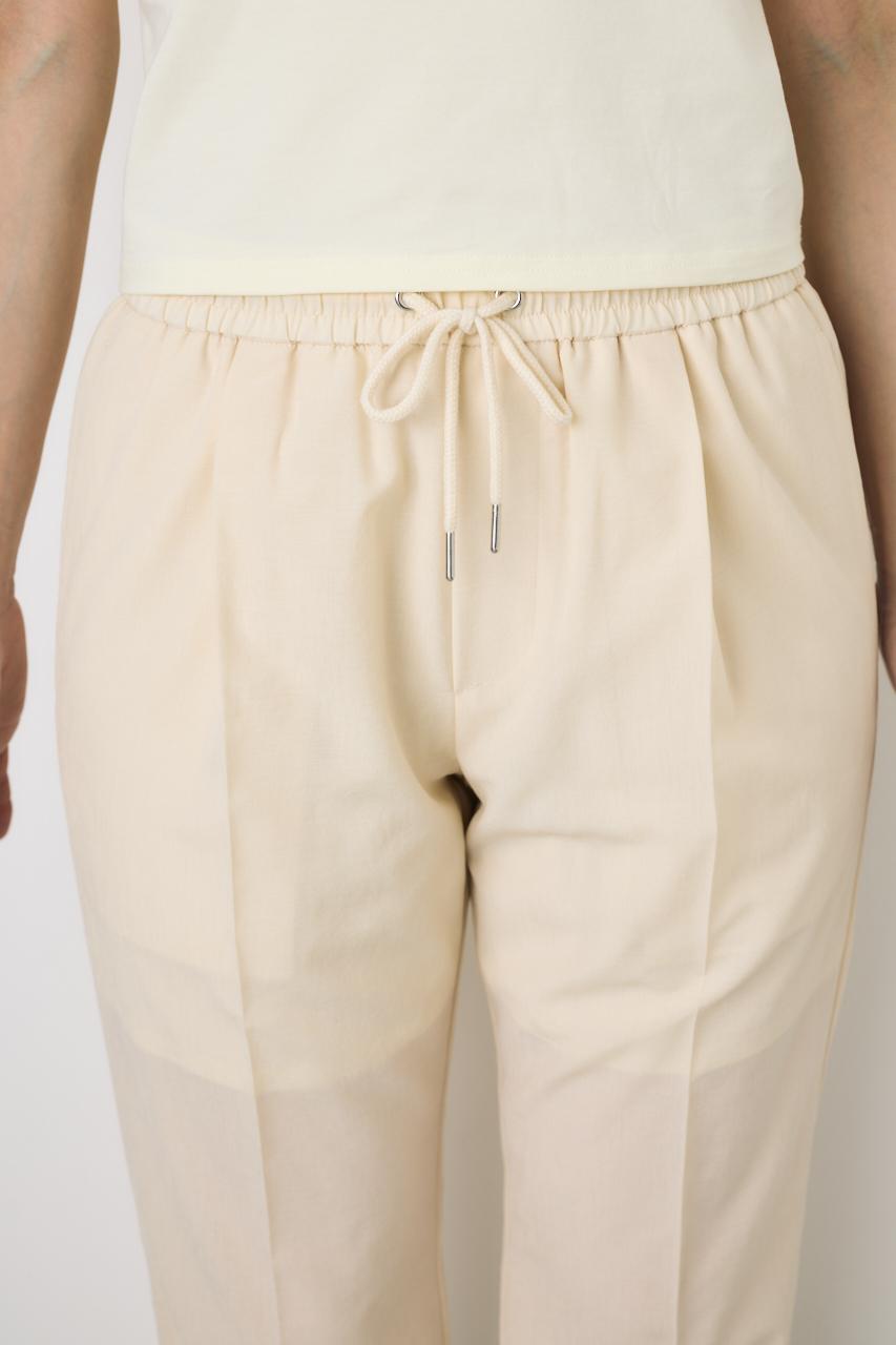 ピンタック入りで縦ラインを強調した、快適さときれい見えを両立するテーパードパンツ。