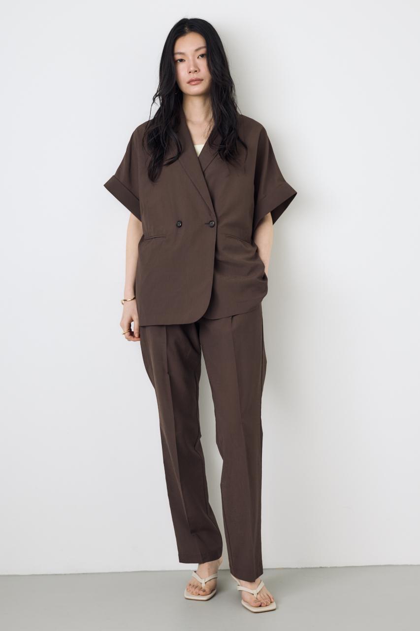 同素材のブラウス(250JSH30-6771 COMFORA AIRウエストマークブラウス)や(250JSB30-1991 COMFORA AIRハーフスリーブジャケット)を合わせるとセットアップで着用可能です。