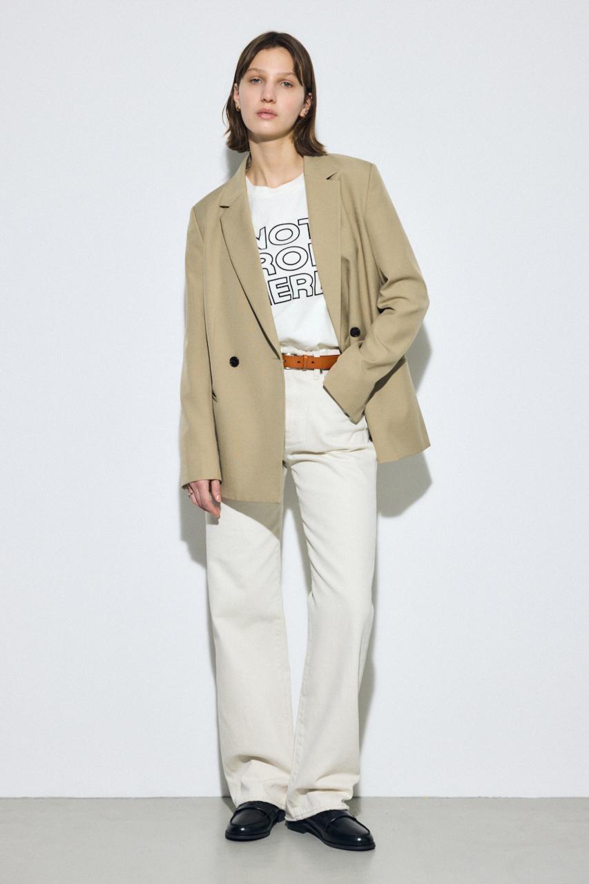 シンプルなTシャツやニットと合わせるだけで、デニムを主役にしたスタイリングが完成。