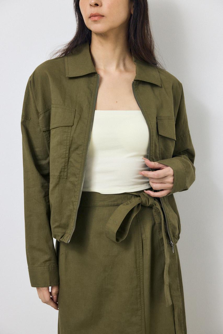 すっきりとしたステンカラーとショート丈が好バランスなリネン混ブルゾン。