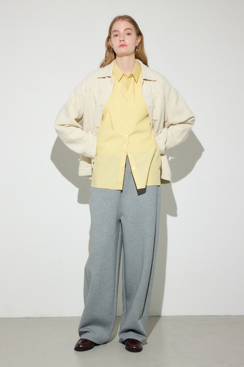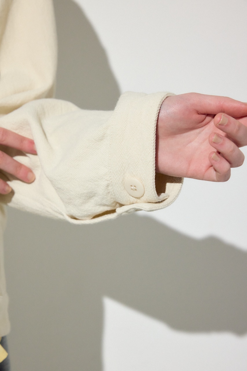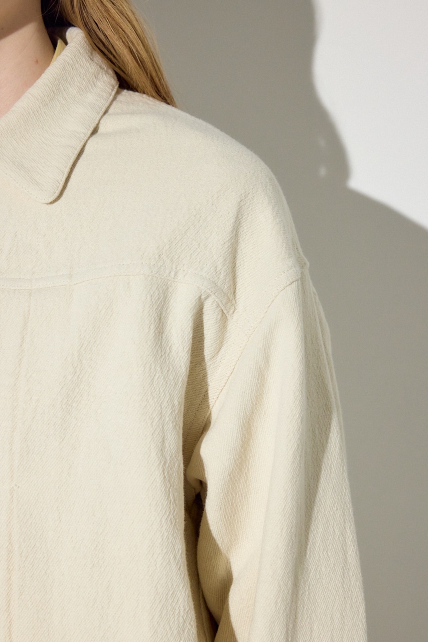 マットな質感と、スラブ糸とツイル組織が掛け合わさった表情の良い素材感が特徴。