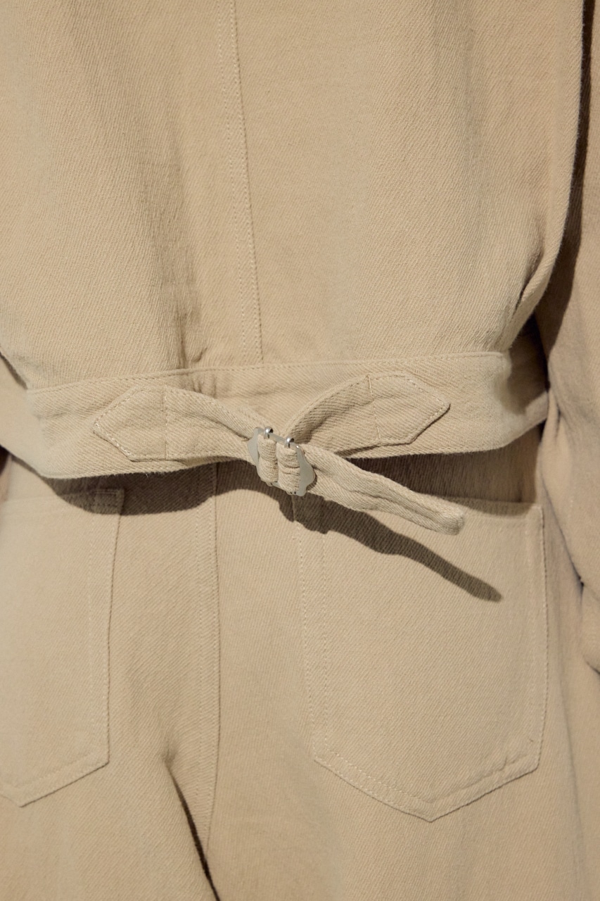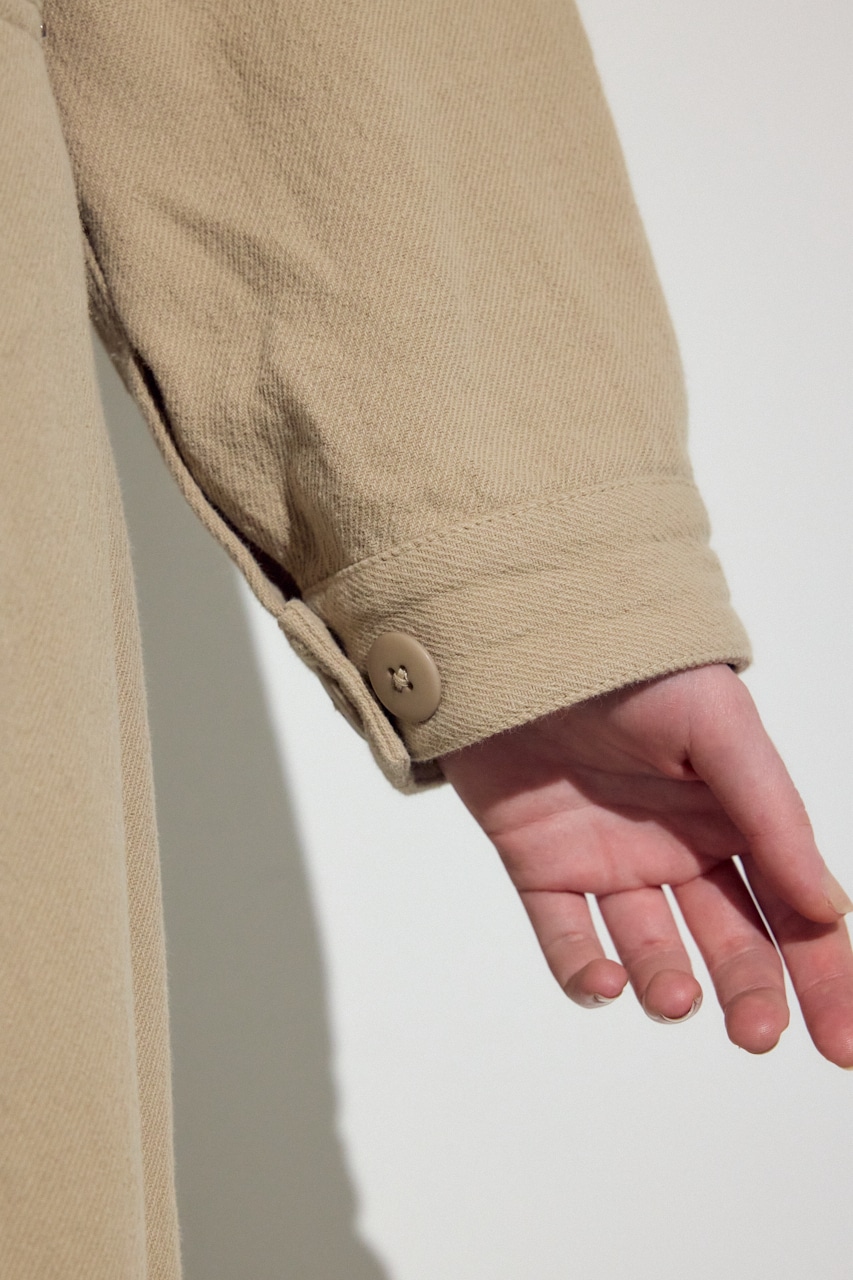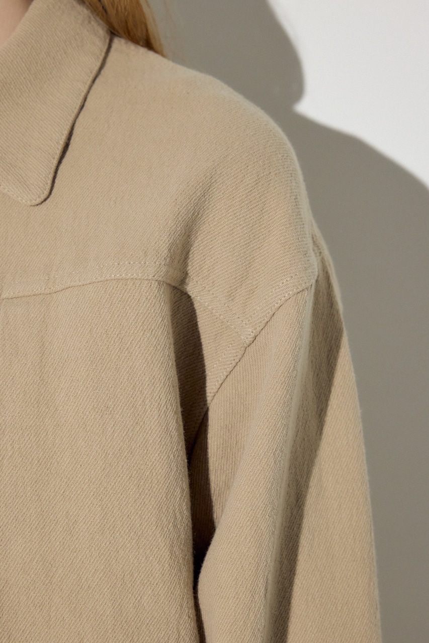 マットな質感と、スラブ糸とツイル組織が掛け合わさった表情の良い素材感が特徴。
