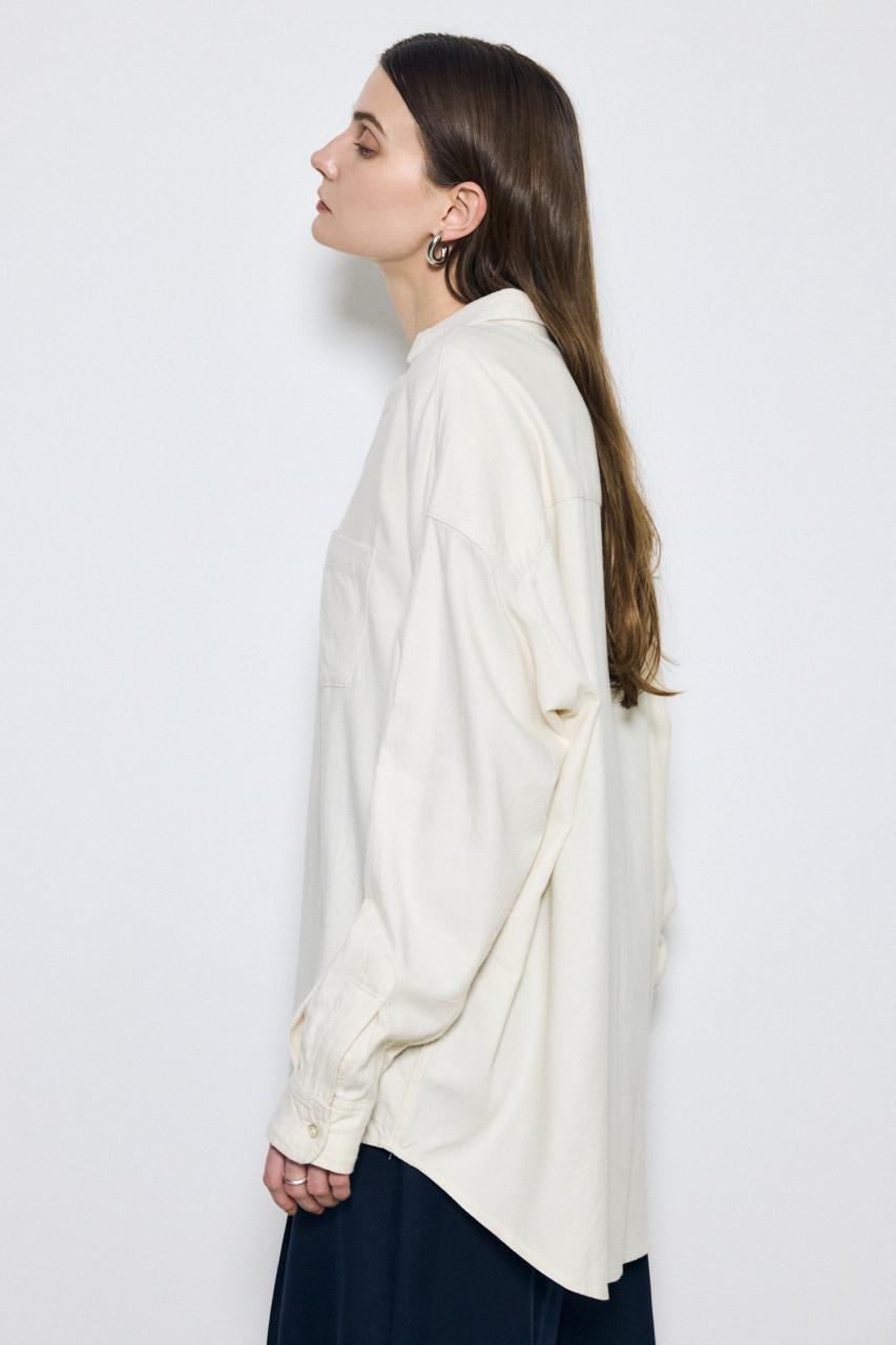 ゆったりとしたオーバーサイズシルエットが体のラインを拾わず、首元はスキッパーデザインで抜け感のある印象に。