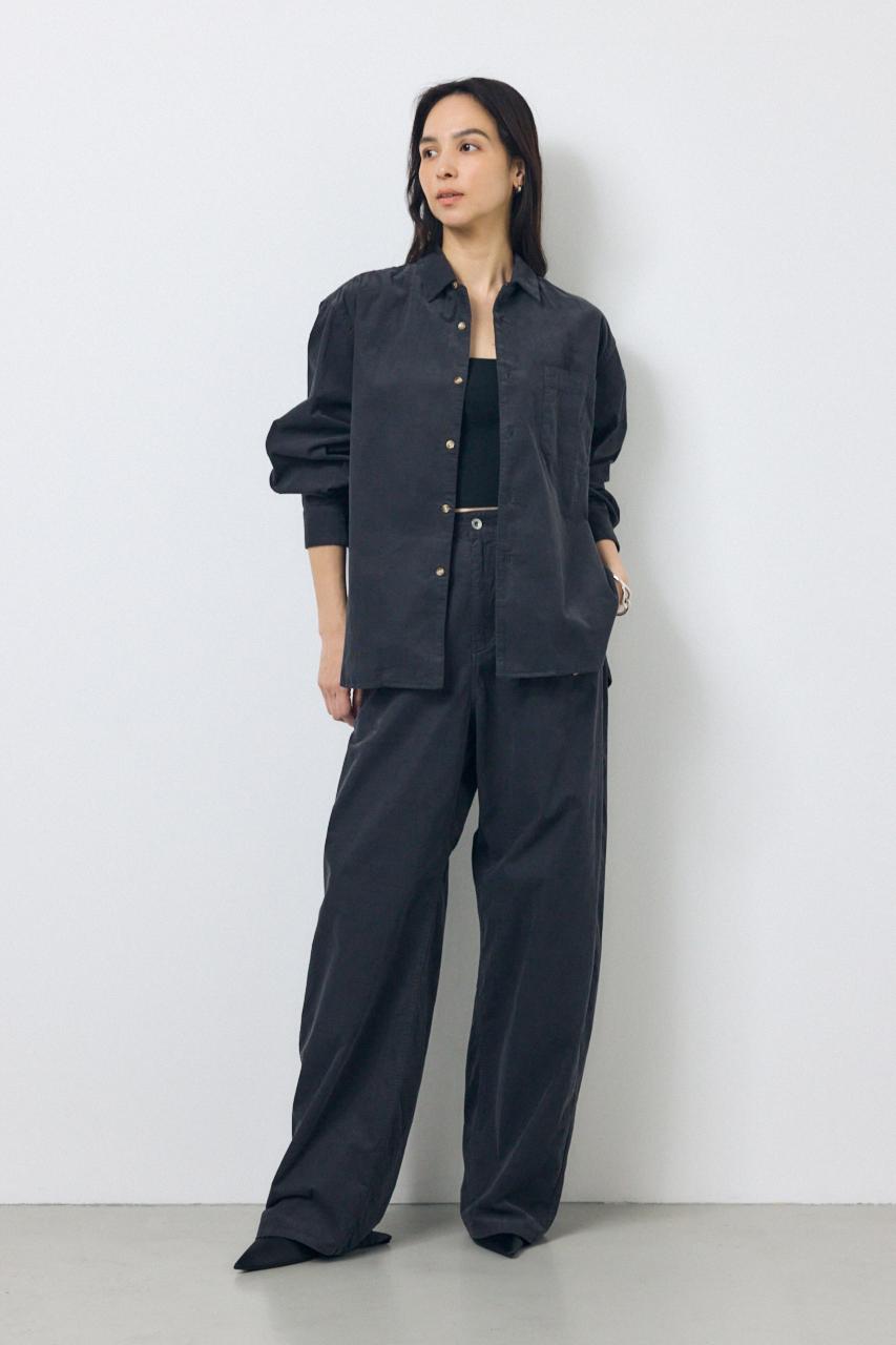 シンプルなカットソーやニットと合わせて、パンツ主役のコーディネートに。