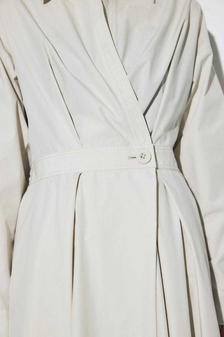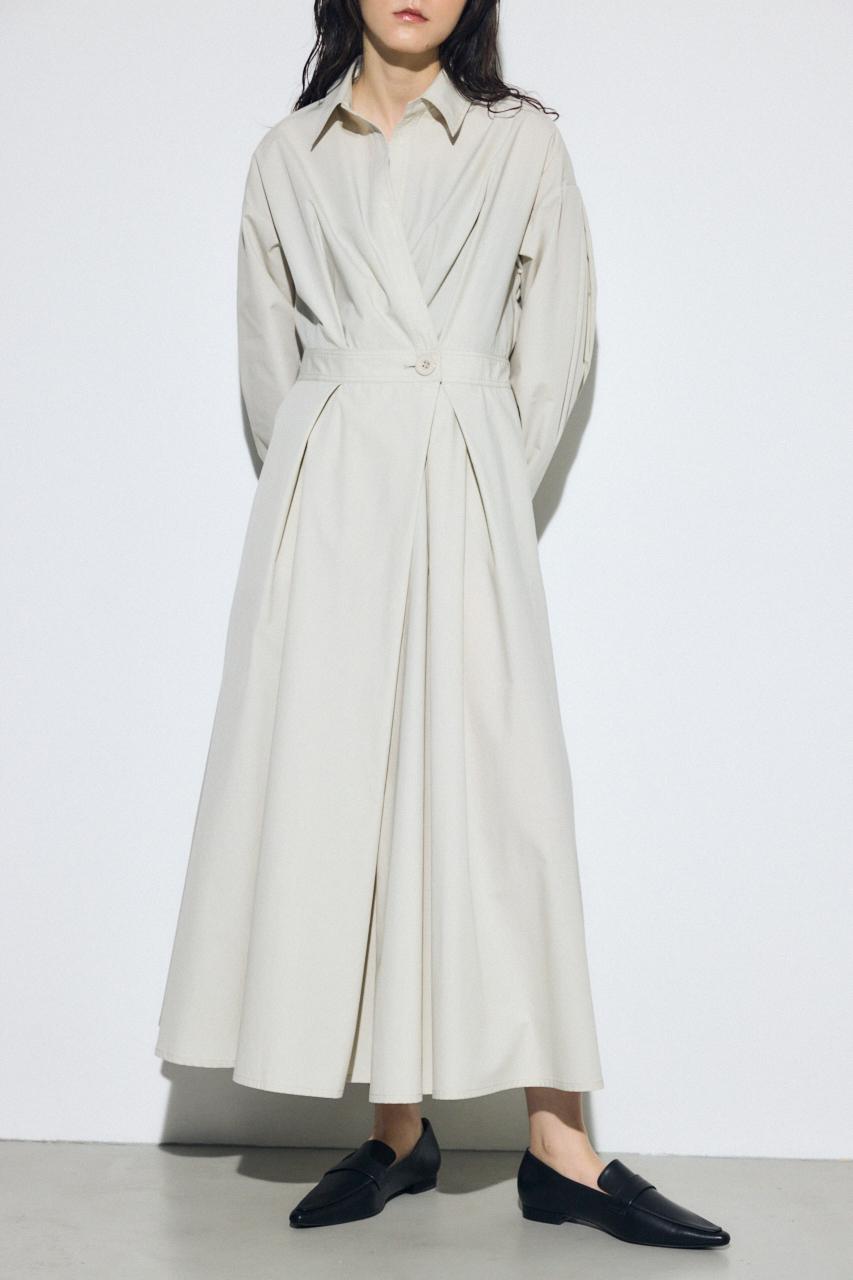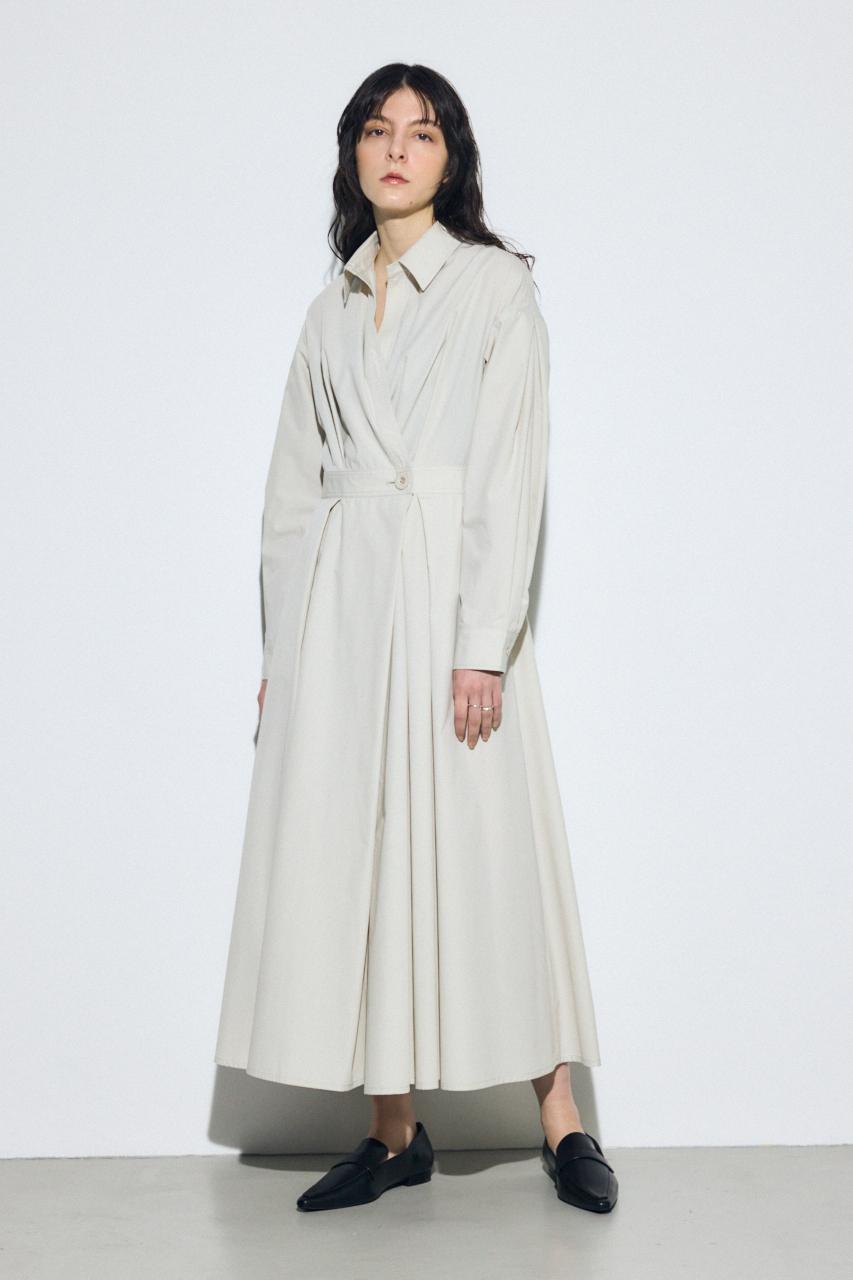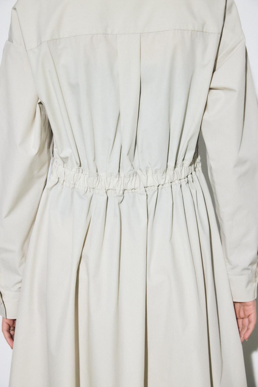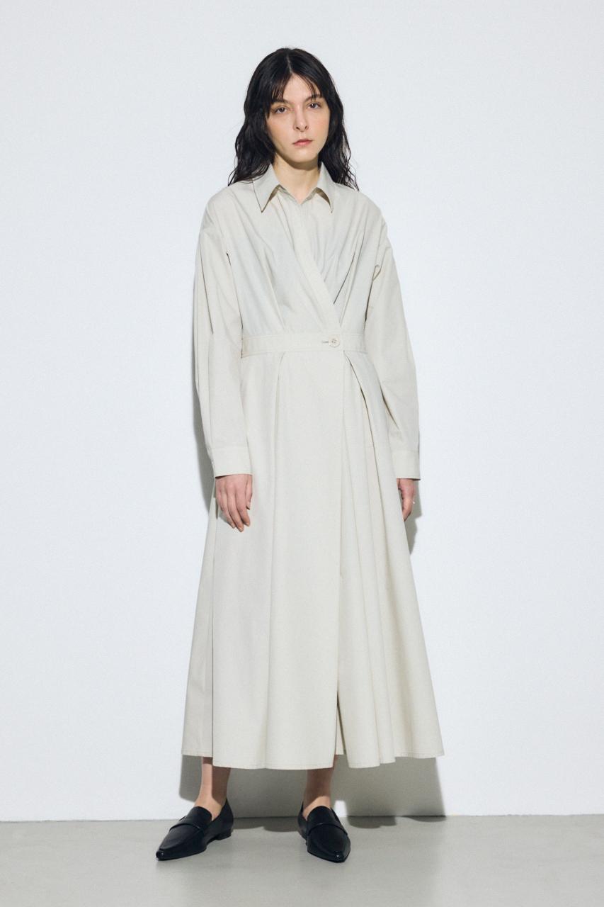 シャツカラーと前開き仕様で甘さを抑え、きちんと感のある印象に。