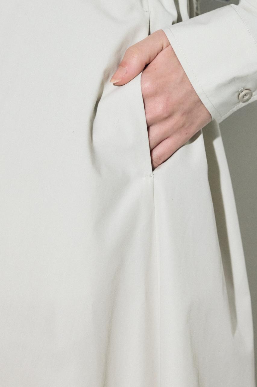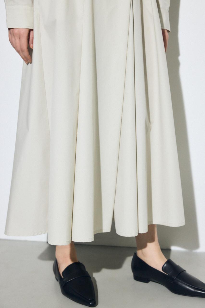 程よいハリと落ち感を併せ持つ素材で、縦ラインがきれいに映えるシルエット。