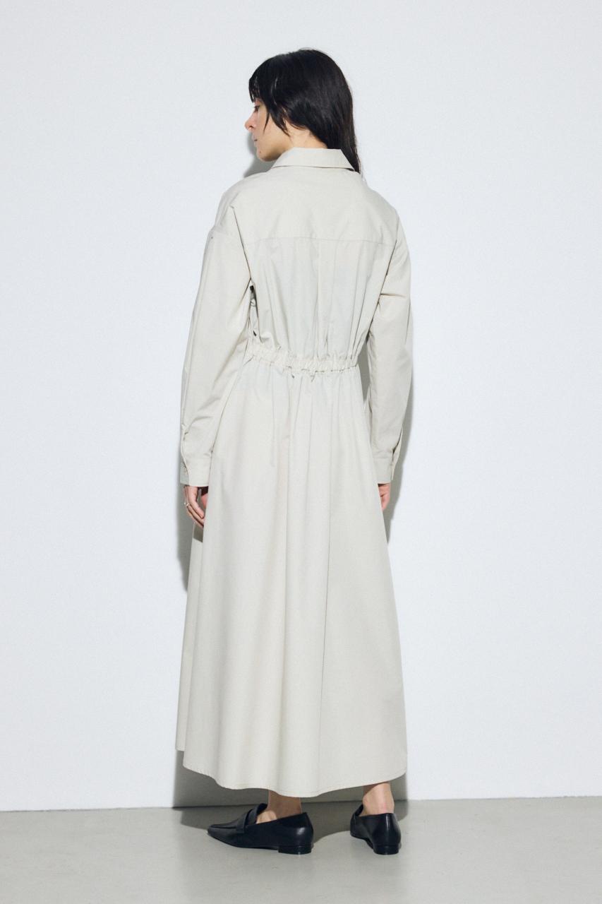 ウエストマークデザインで、女性らしいメリハリと上品な佇まいを叶えるロングシャツワンピース。