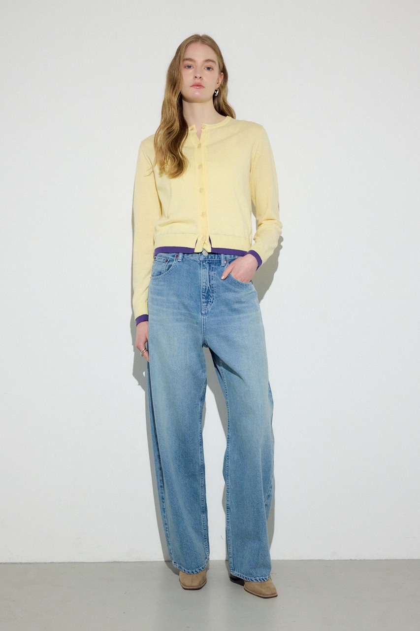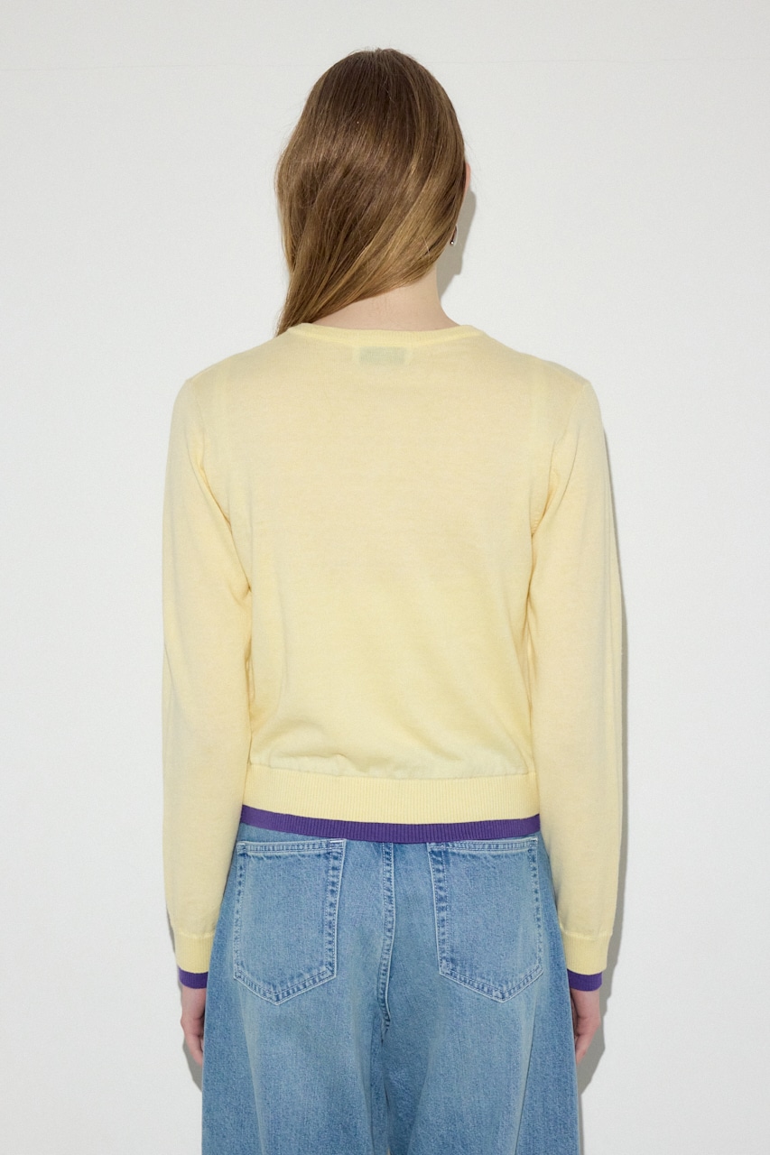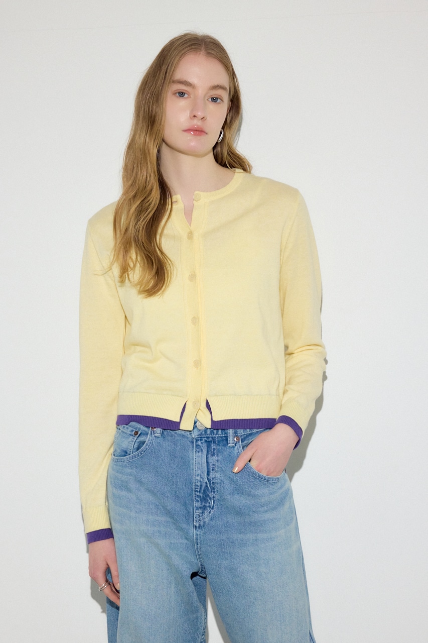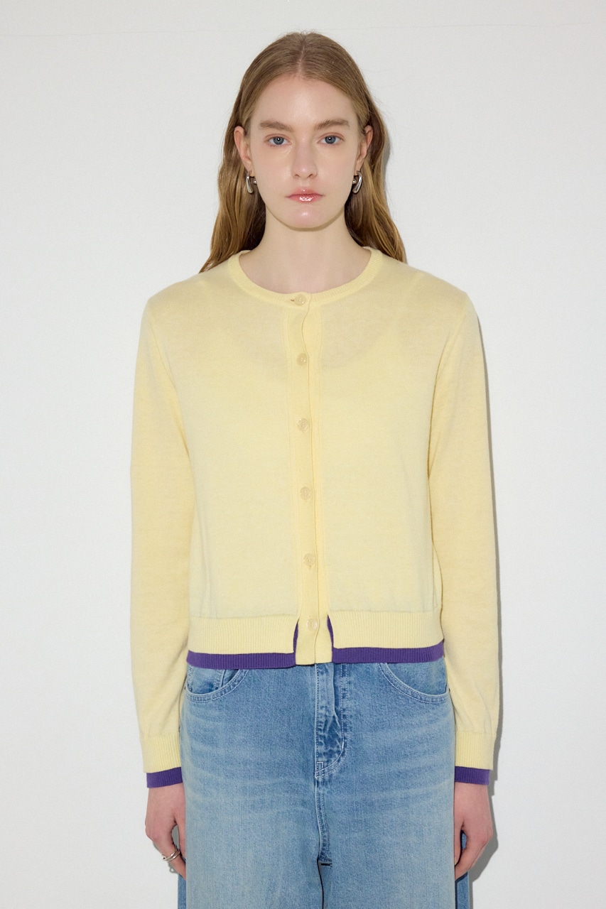 カシミヤ混素材の上品な風合いに、袖口と裾のフェイクレイヤードディテールがアクセントになったクルーネックカーディガン。