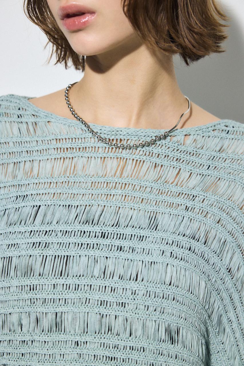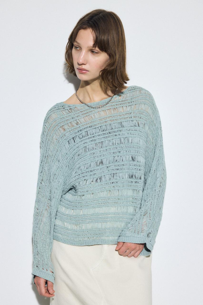 テープヤーン素材を使用した、表情豊かなドルマンニットトップス。