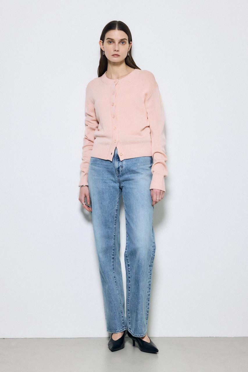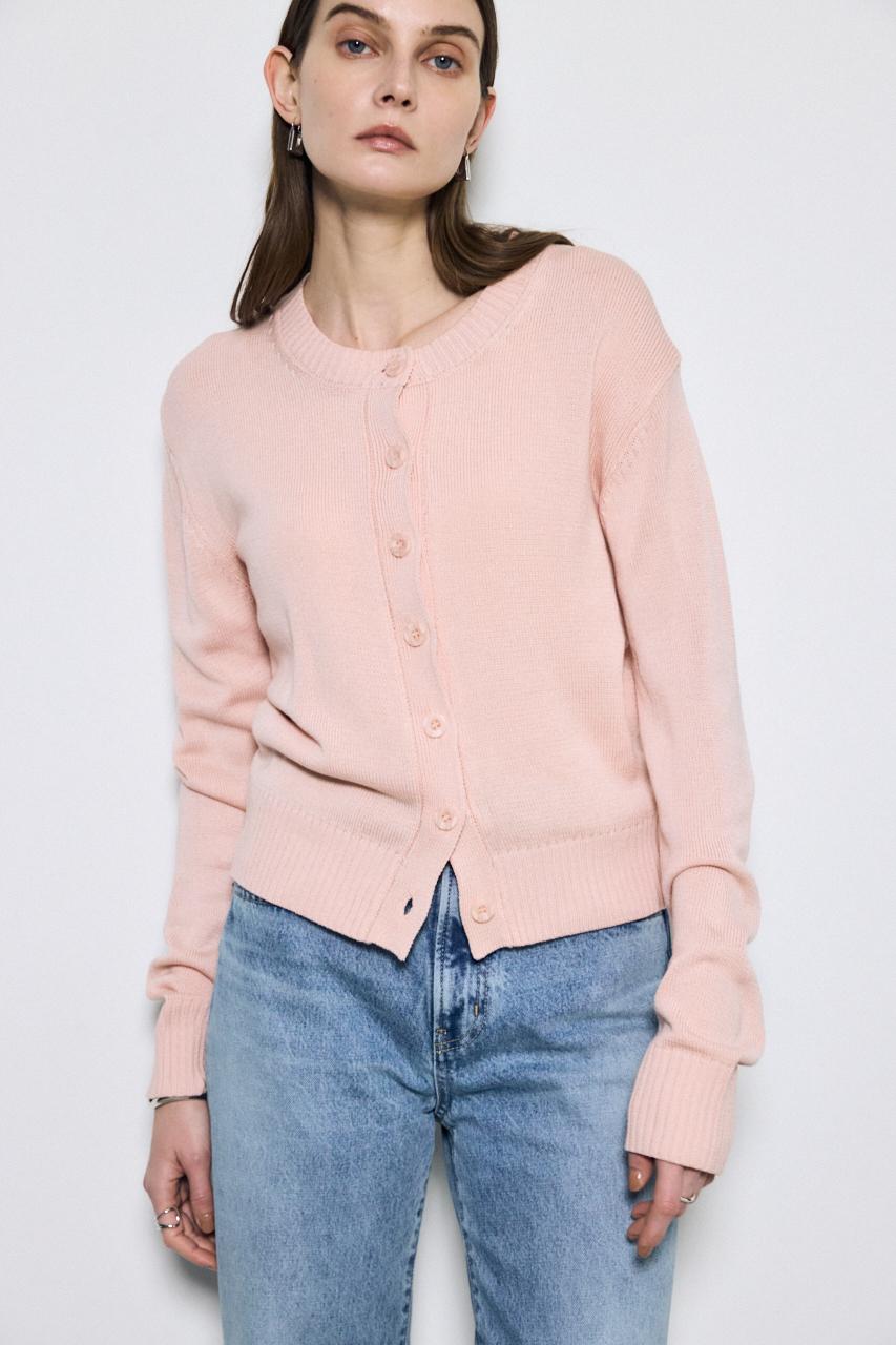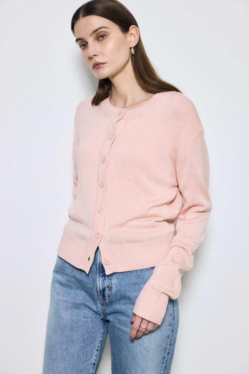 清涼感のあるリネンタッチ素材を使用した、クルーネックニットカーディガン。