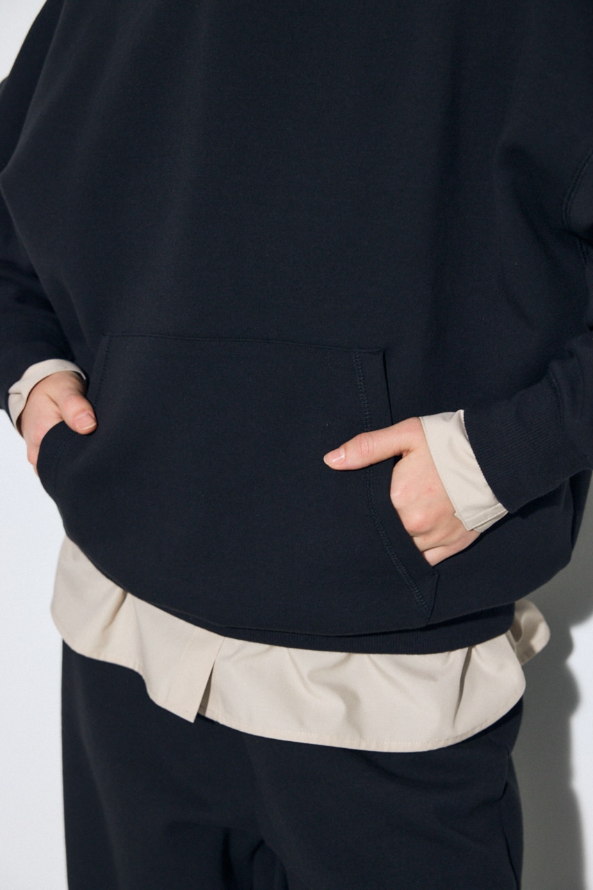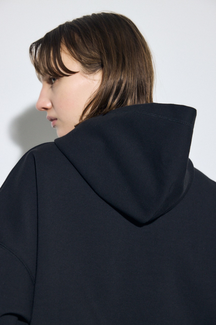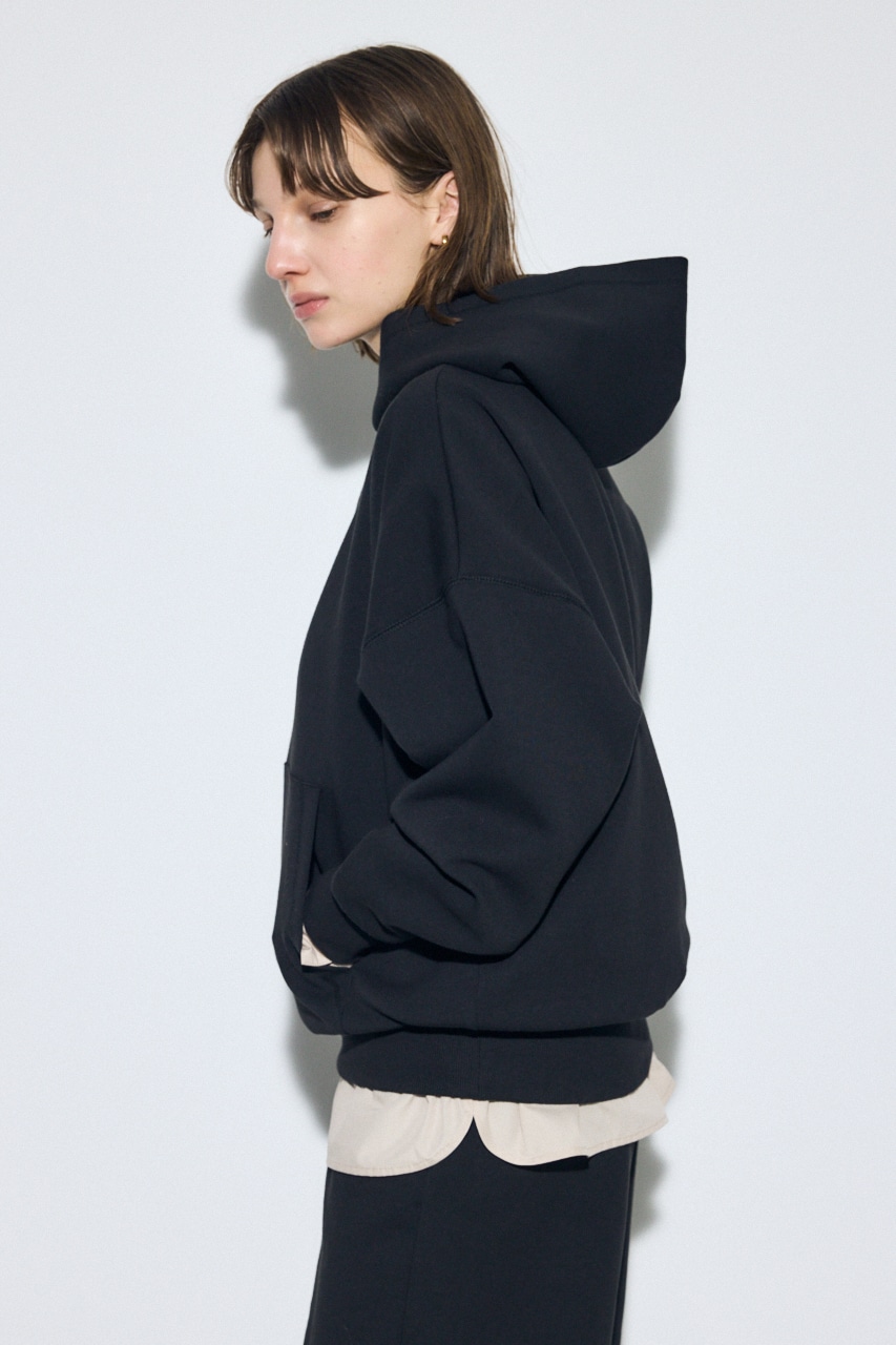 立体感のあるシルエットと、クリーンな表情が魅力のダンボールカット素材パーカー。