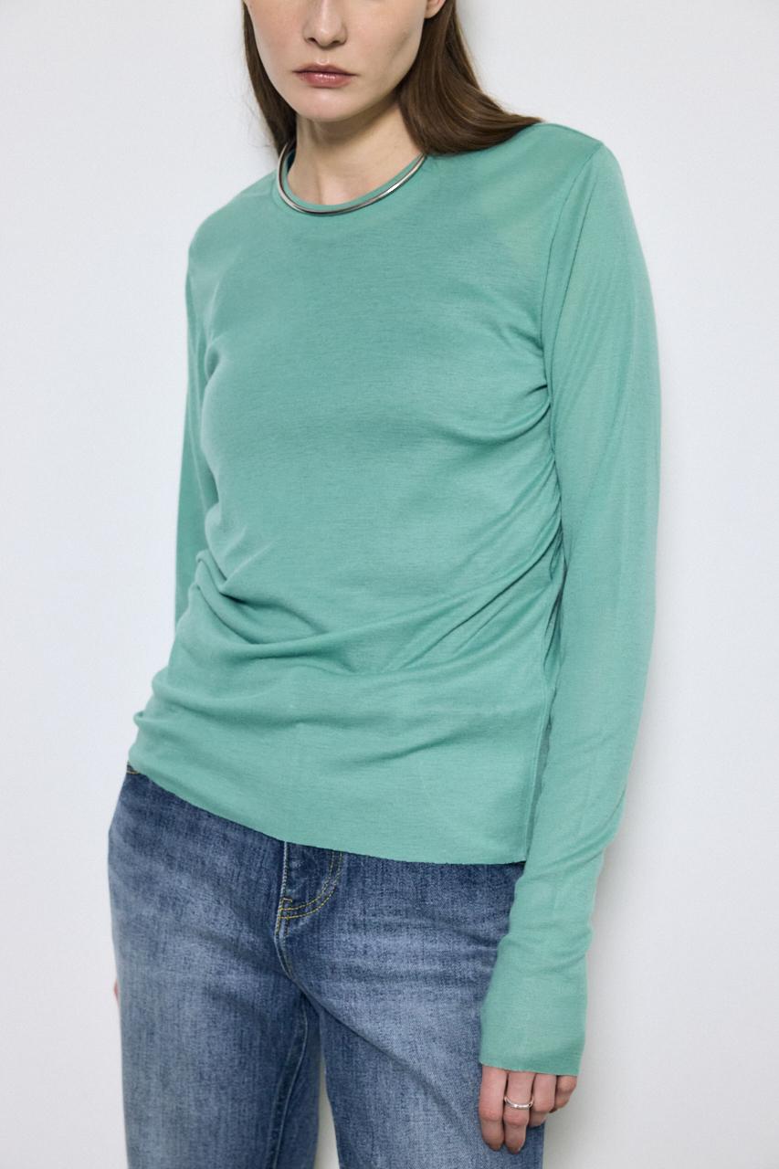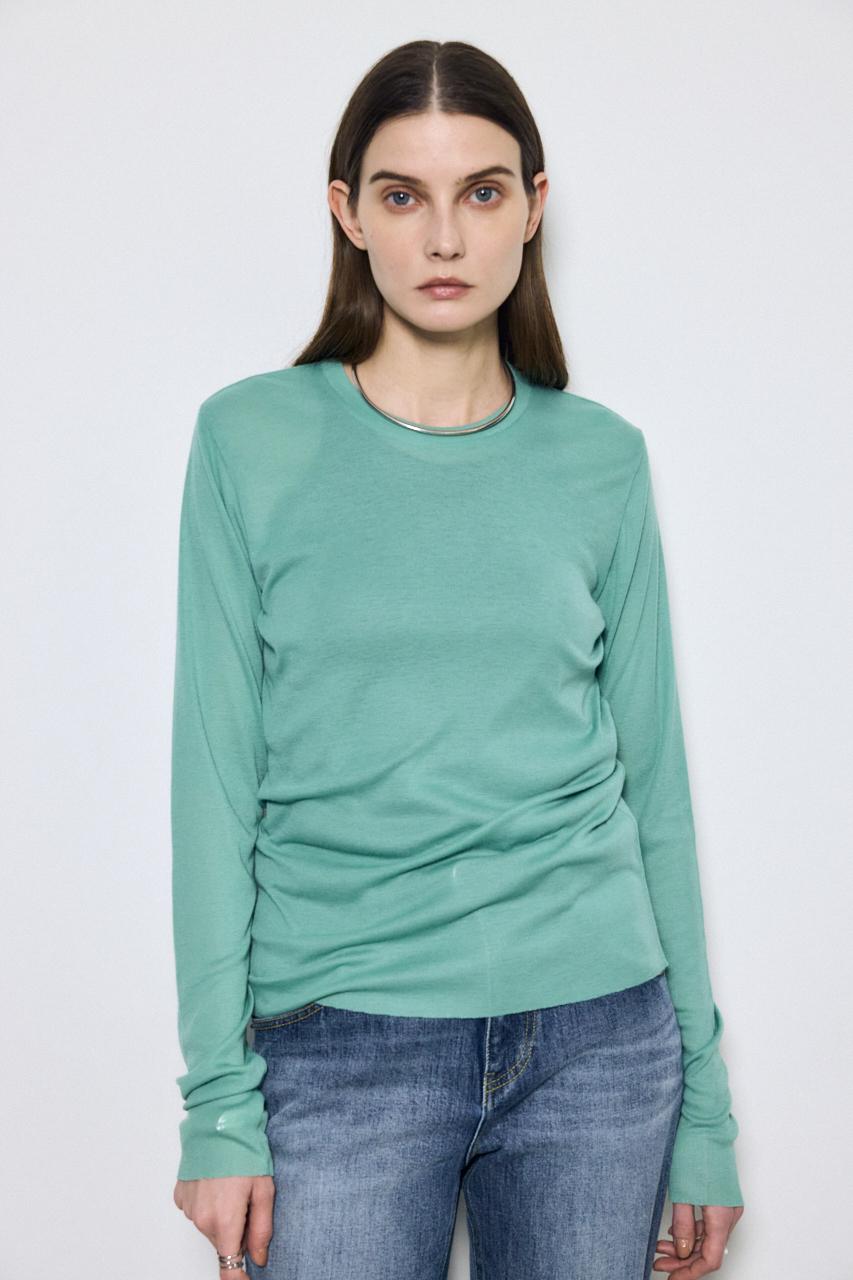 程よい透け感が魅力の、シアー素材ロングTシャツ。