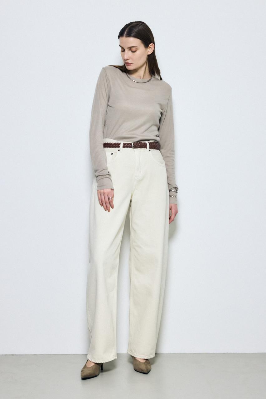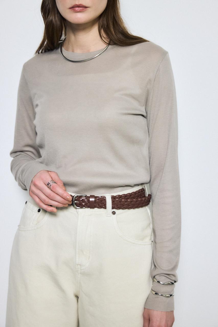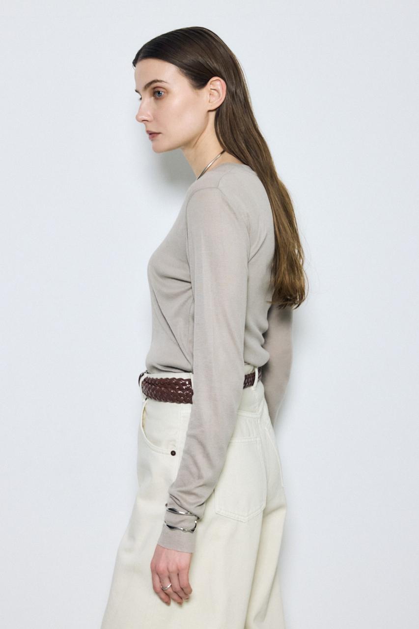 ベーシックなクルーネック仕様で、レイヤードしやすいデザイン。