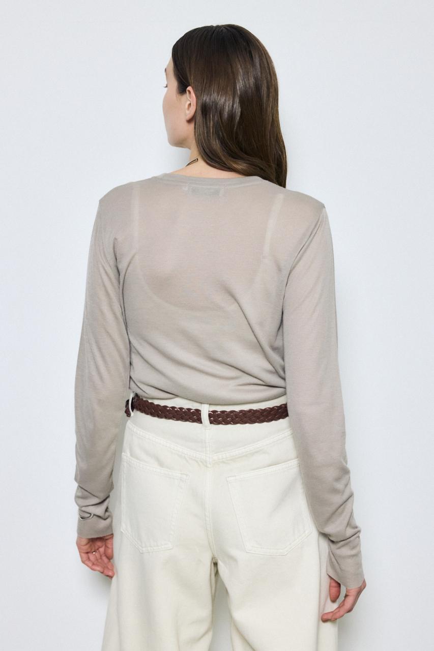 程よい透け感が魅力の、シアー素材ロングTシャツ。
