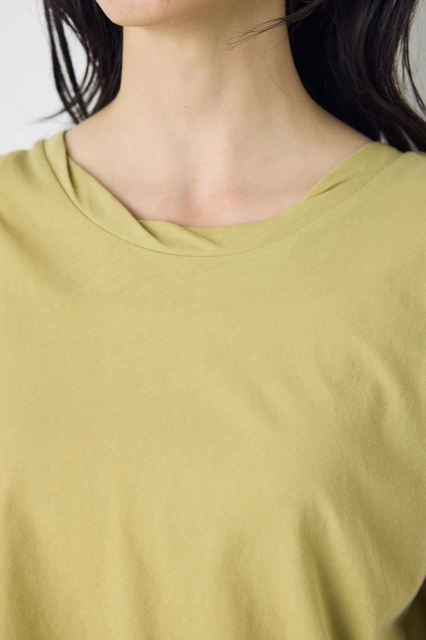 ネックラインに施したツイストデザインが、シンプルな中に女性らしいニュアンスをプラス。