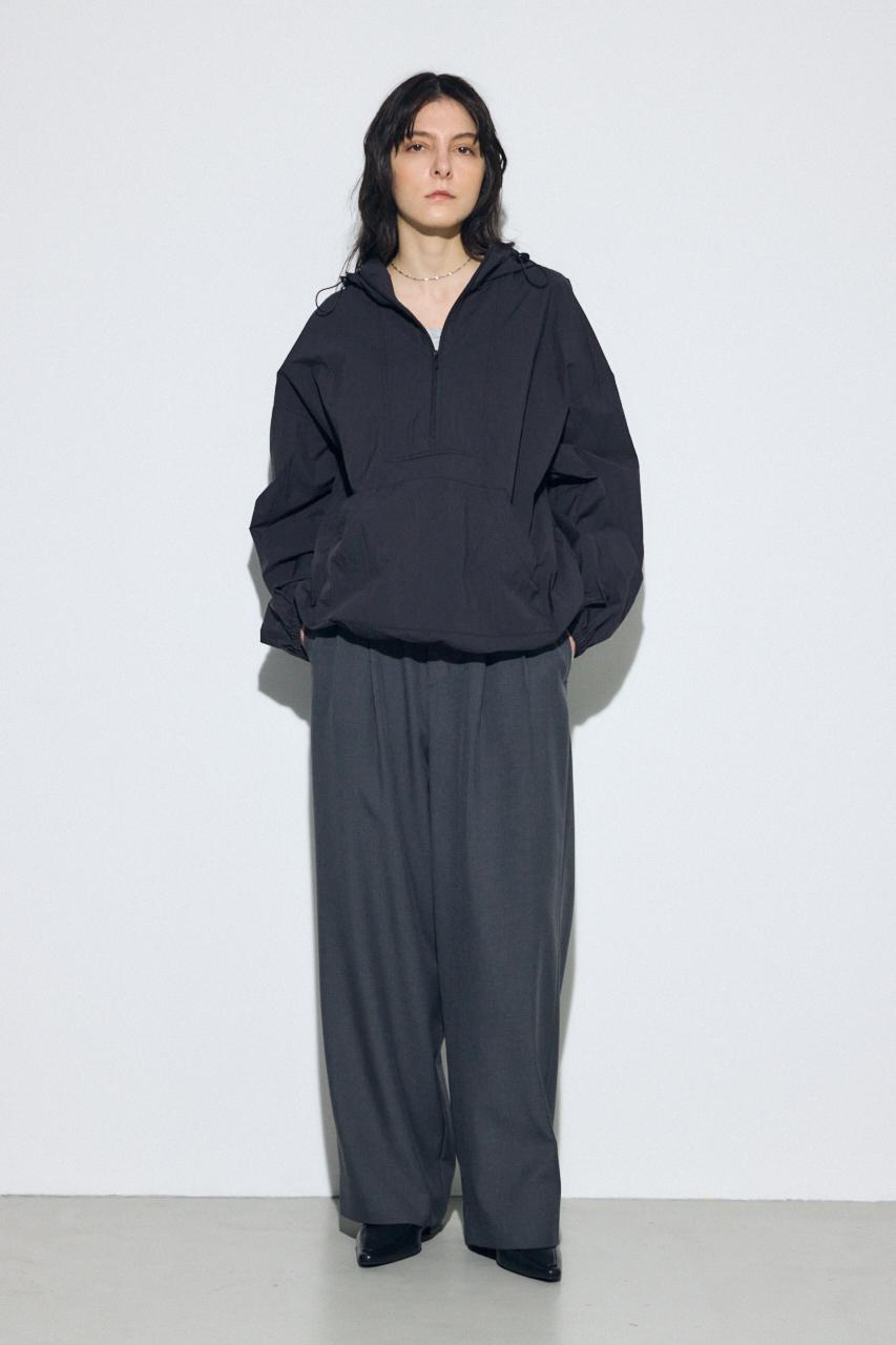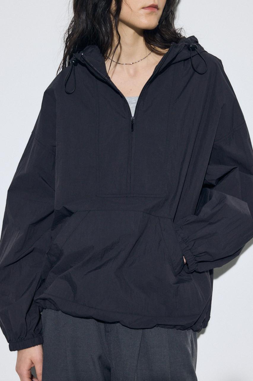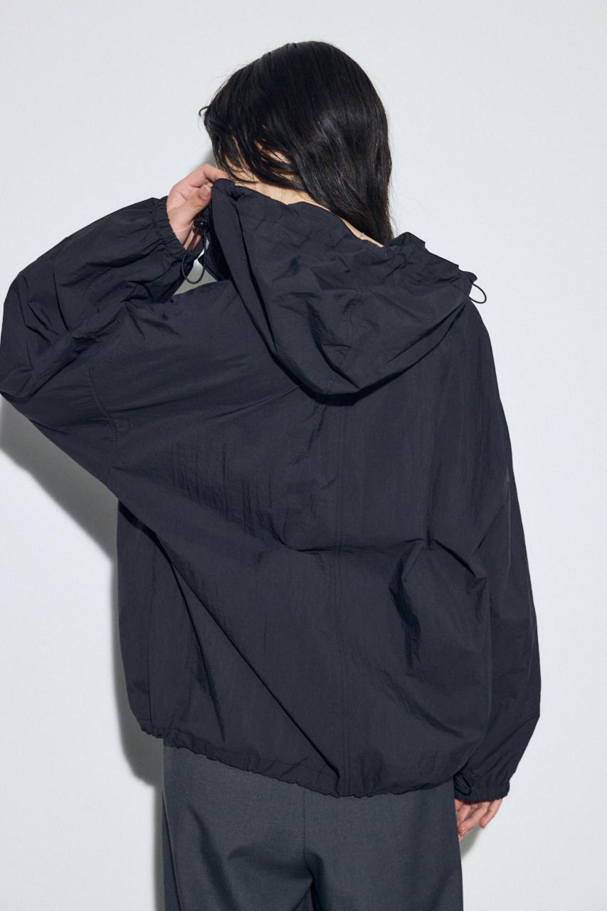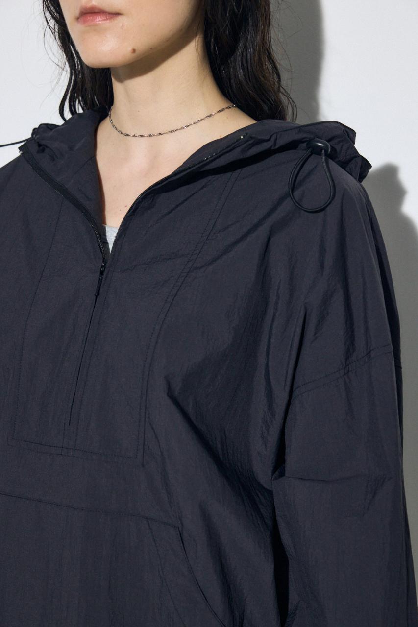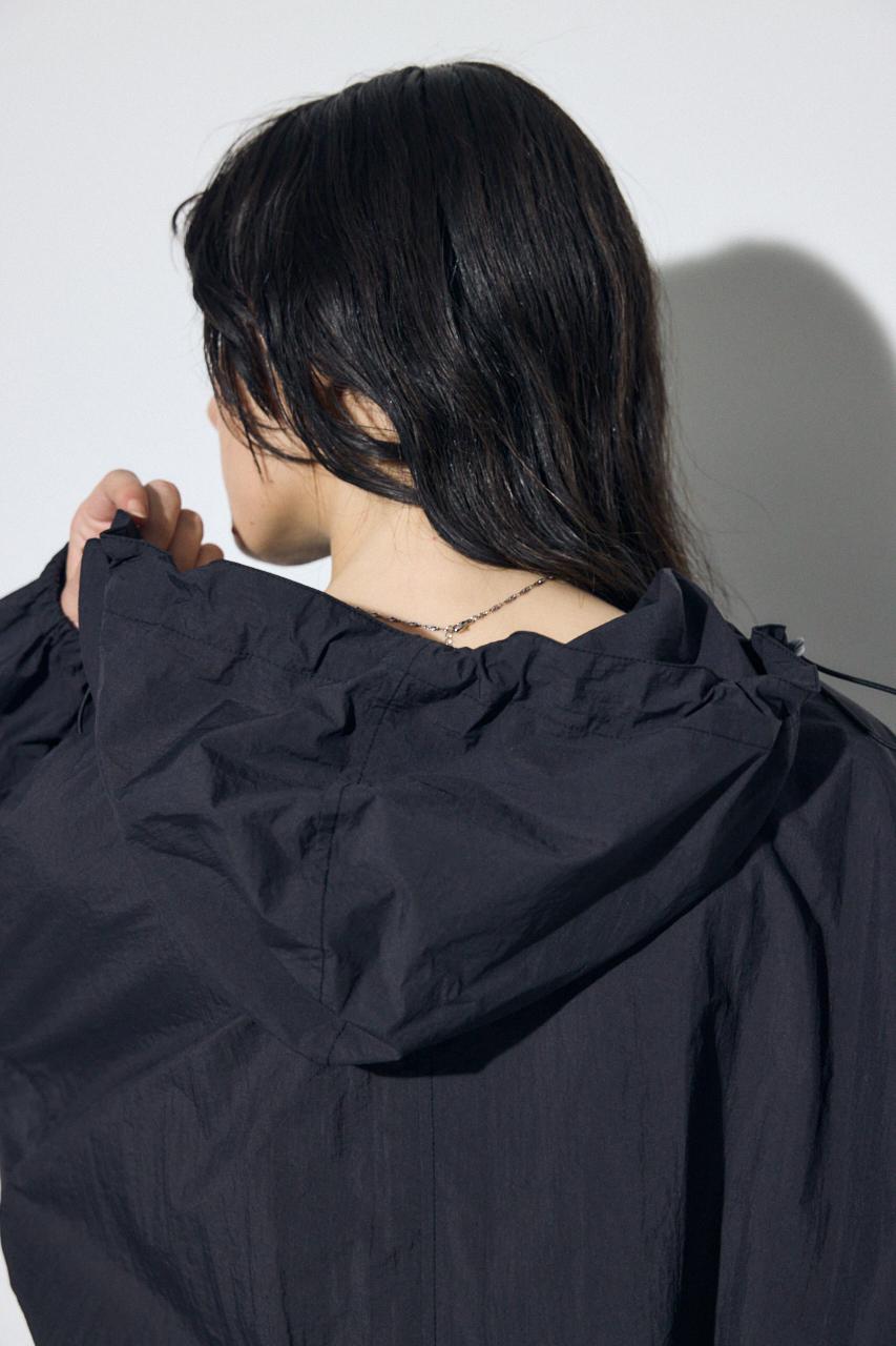 シンプルなデザインながら、フード付きでコーディネートのアクセントになる一着です。