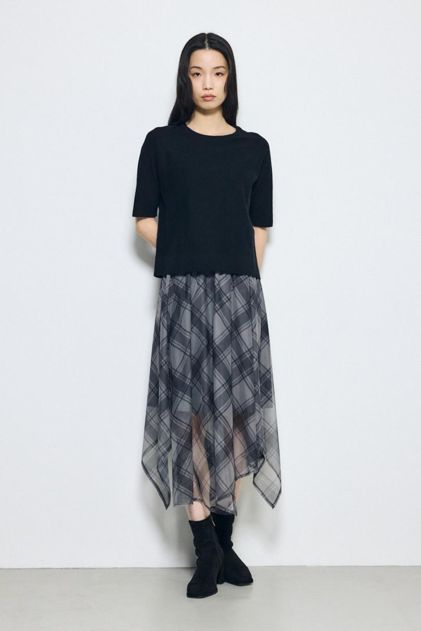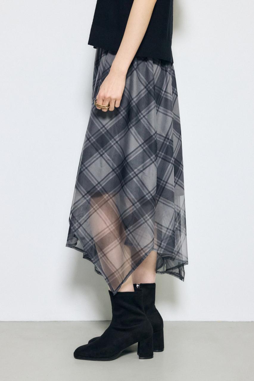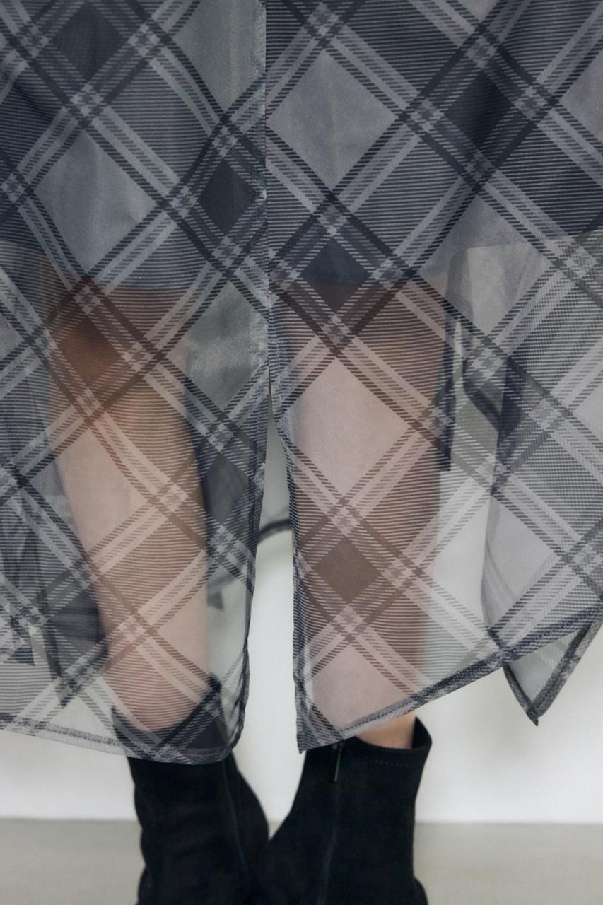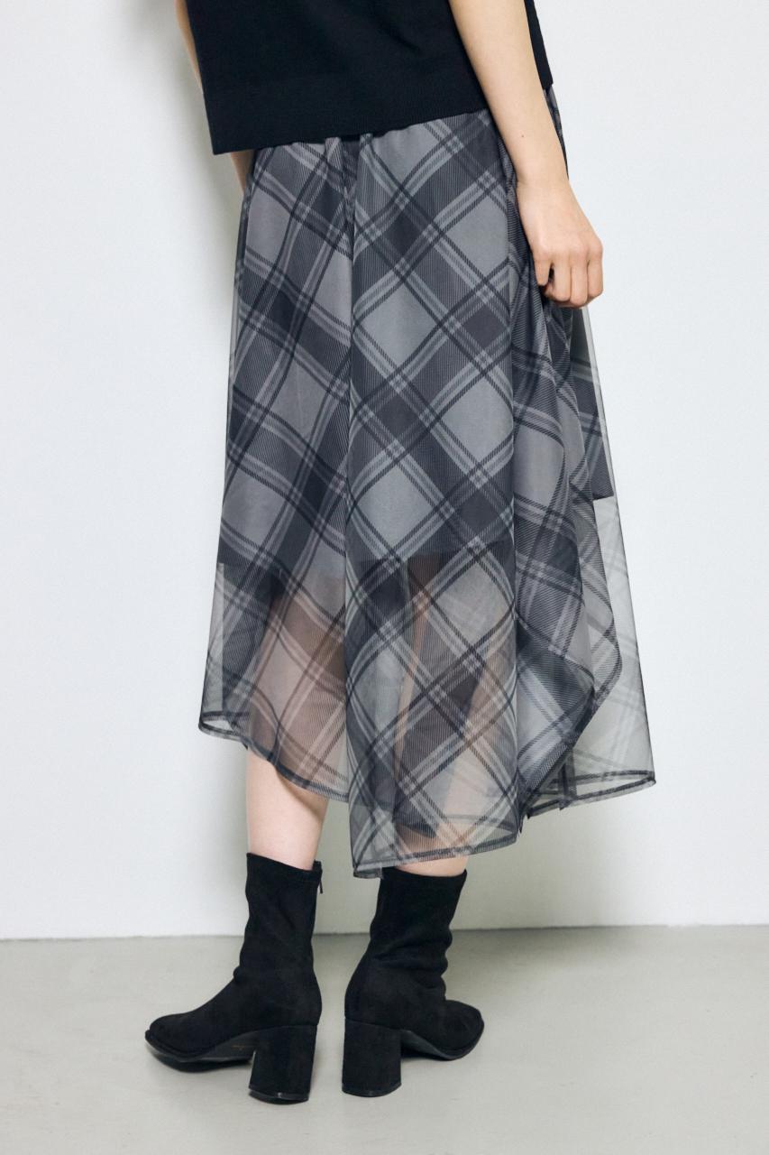 透け感のあるチュール素材にチェックプリントをした素材を使用。