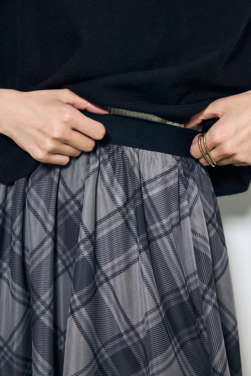 繊細なチェック柄とシフォン素材が軽やかに揺れるフレアスカート。