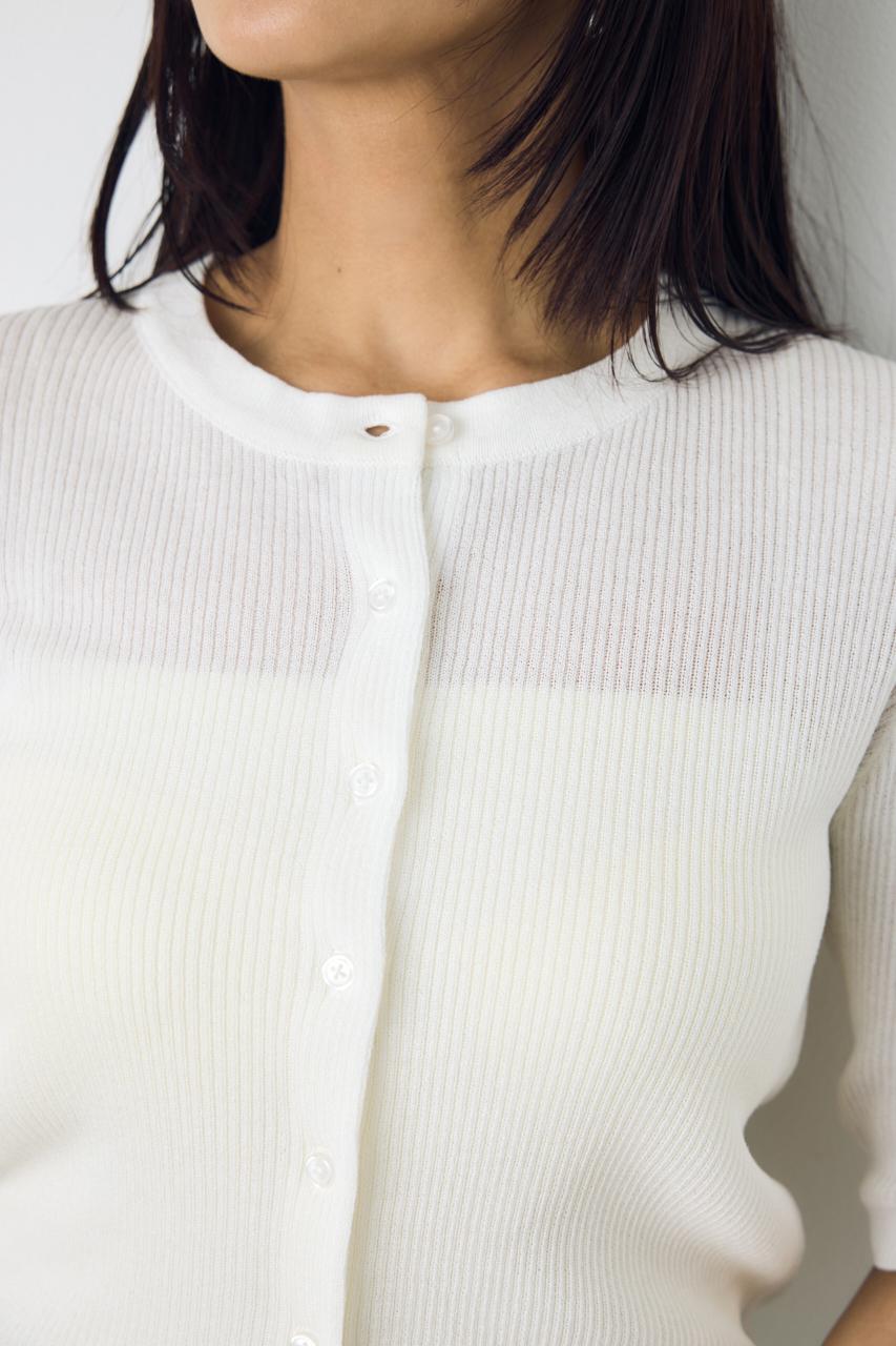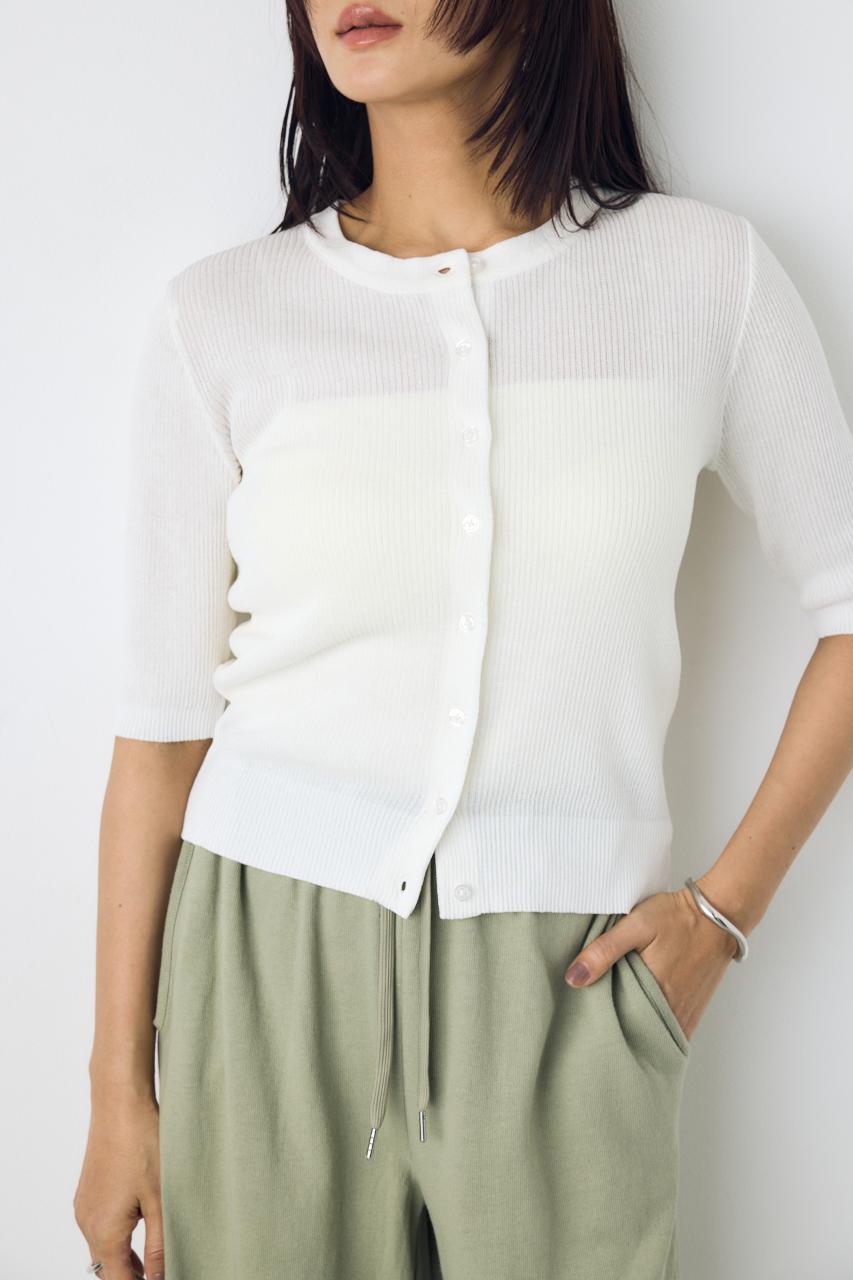 繊細な透け感が魅力の、シアーリブニットカーディガン。