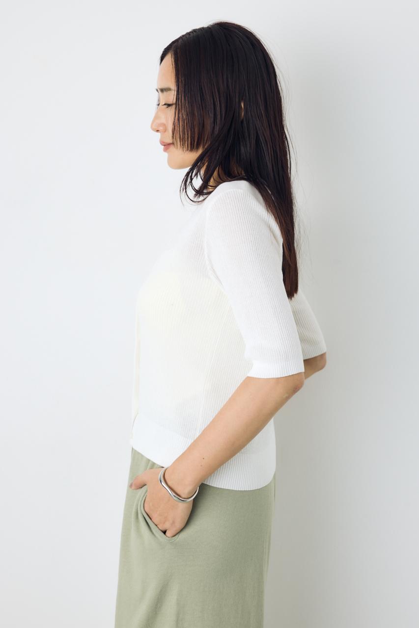 ドライタッチでシャリ感のあるシアーリブニットを使用。