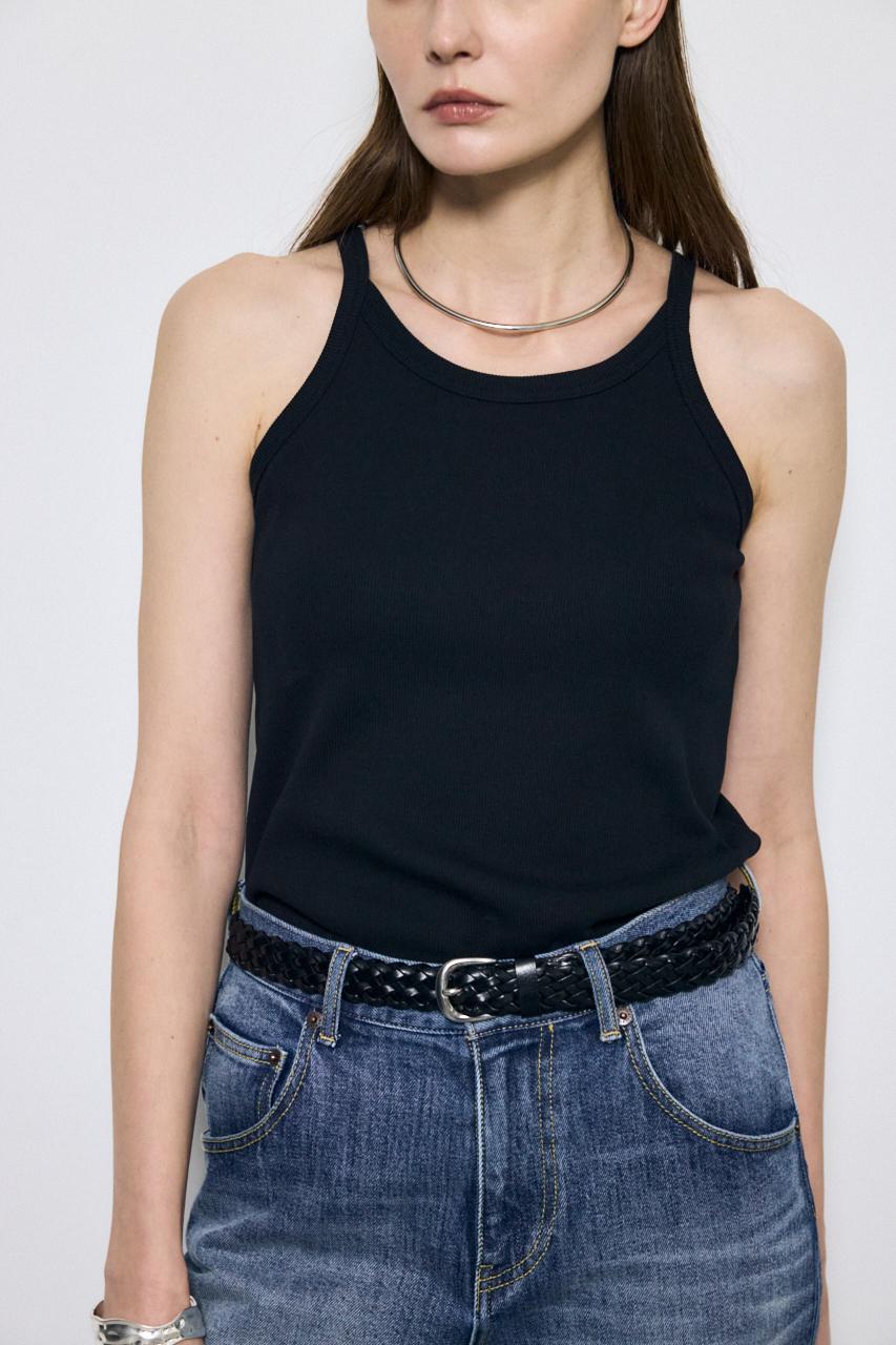 ヘルシーな肌見せが楽しめる、カップ付きホルターネックキャミソール。