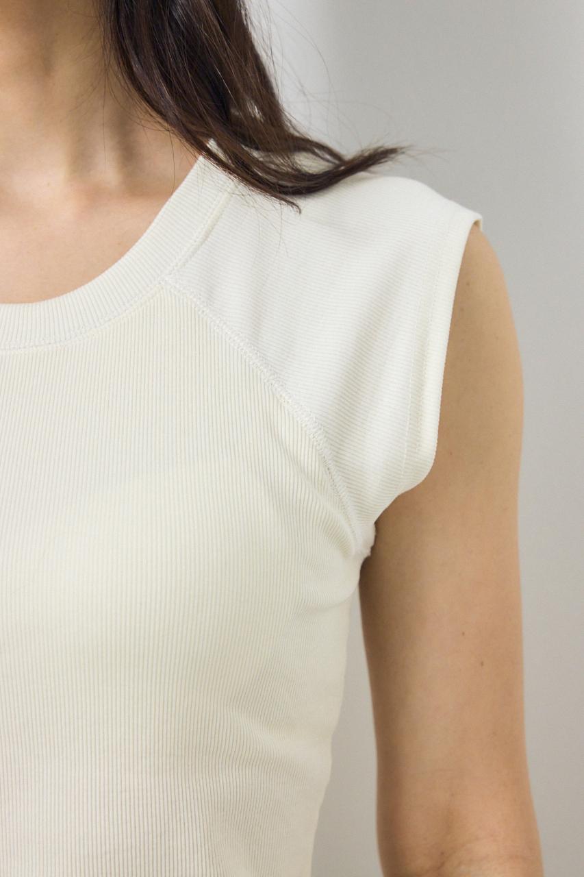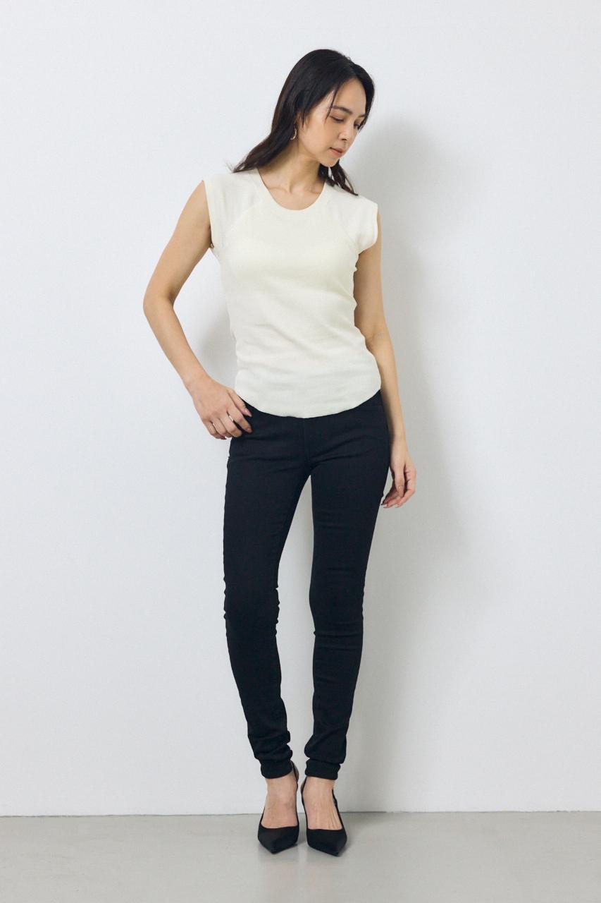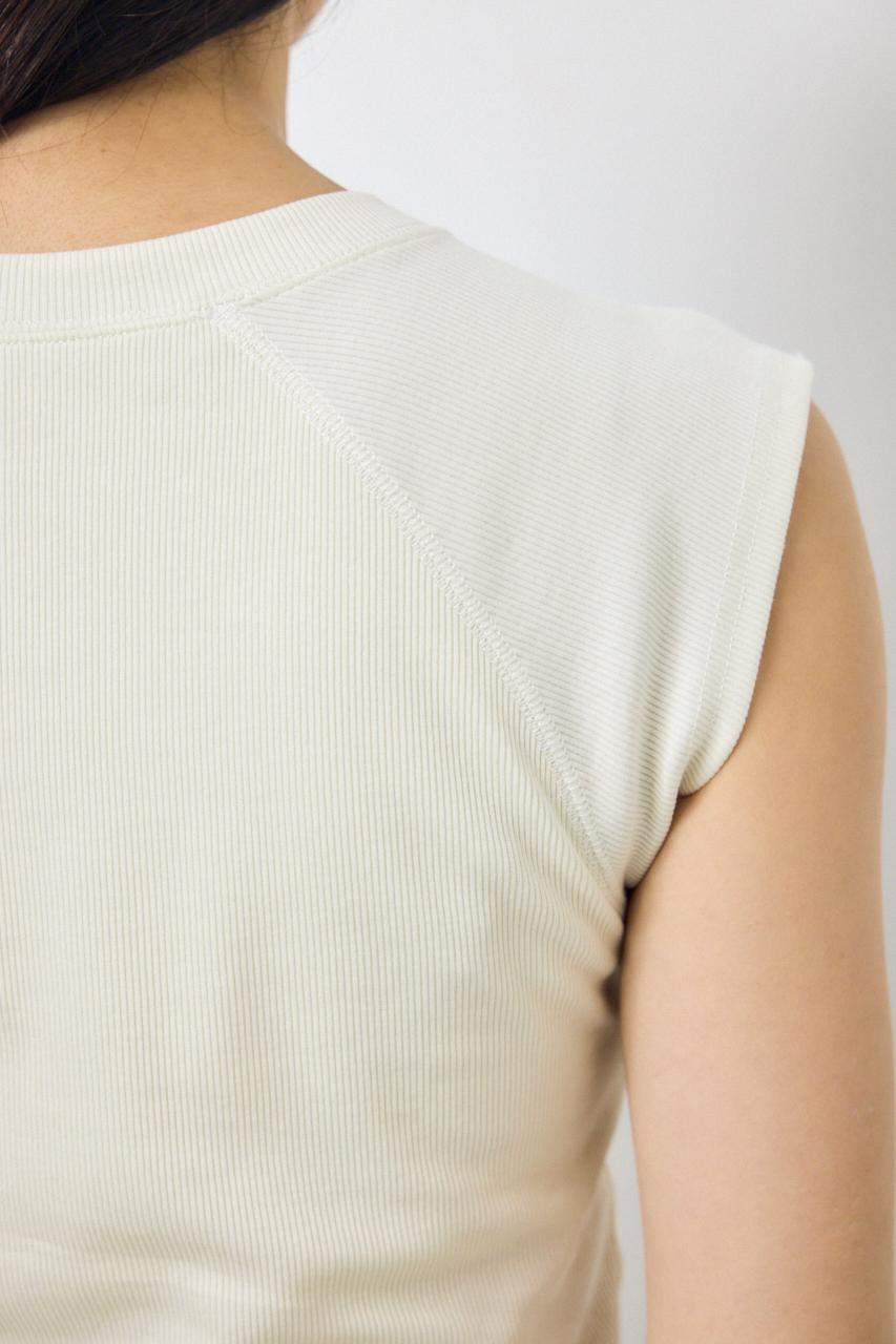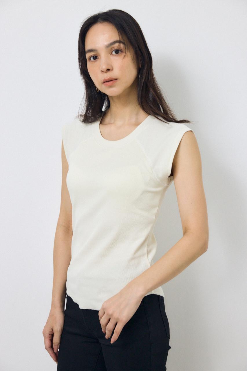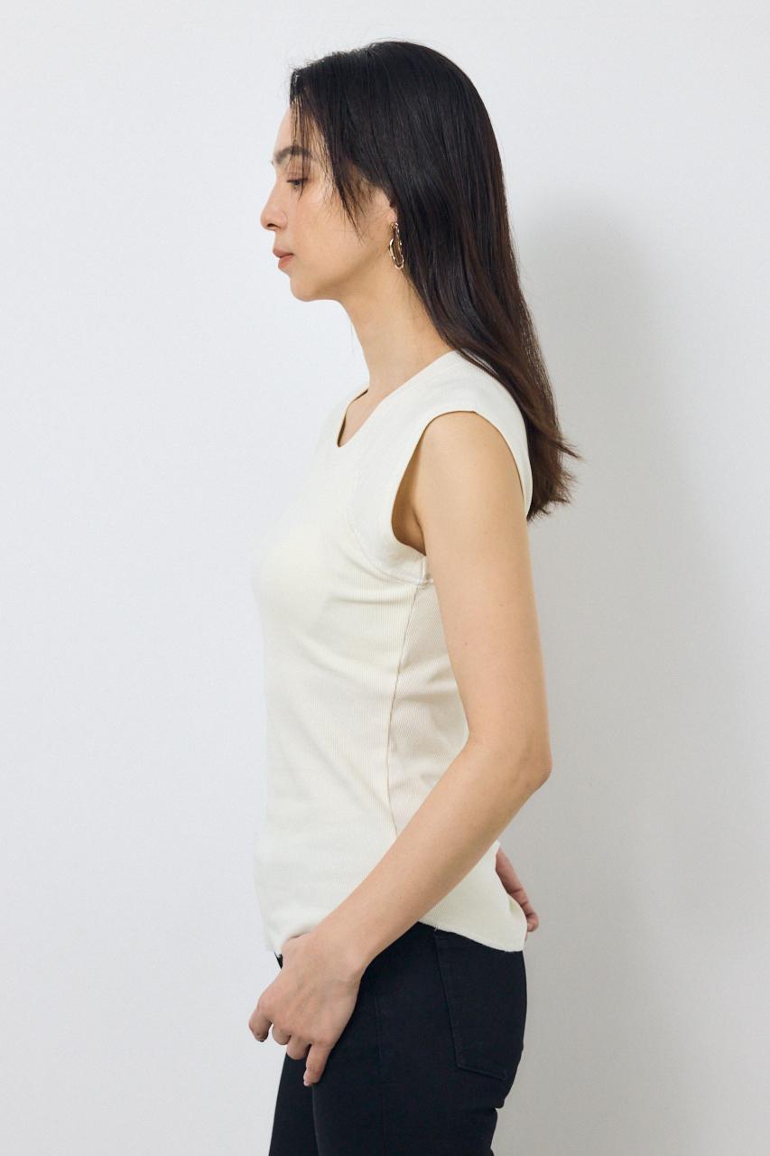 ノースリーブデザインで肩まわりをすっきりと見せ、無駄のないシンプルなデザインで、デイリーに使いやすく仕上げています。