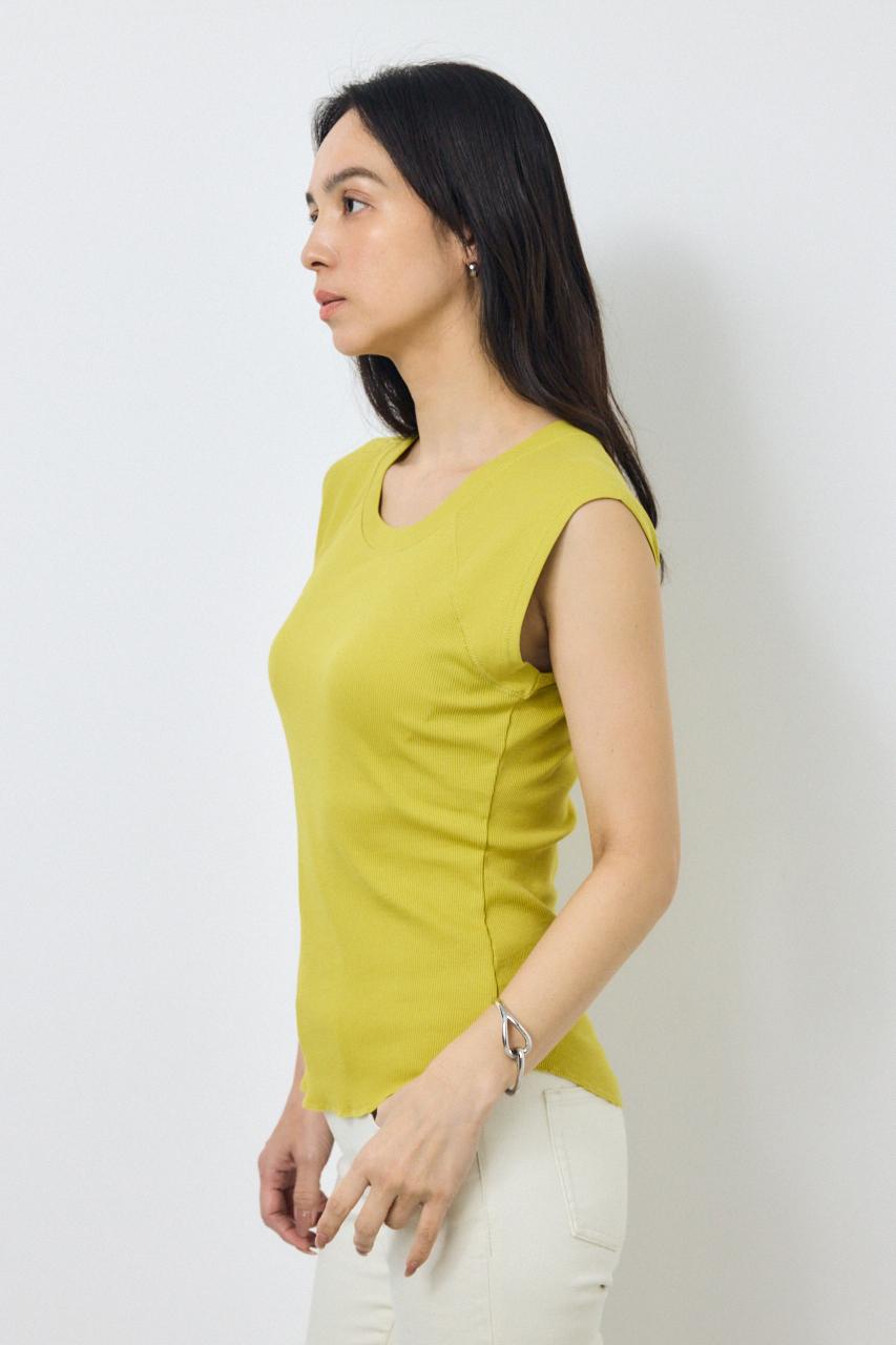 シンプルで使い勝手の良い、カップ付きノースリーブトップス。