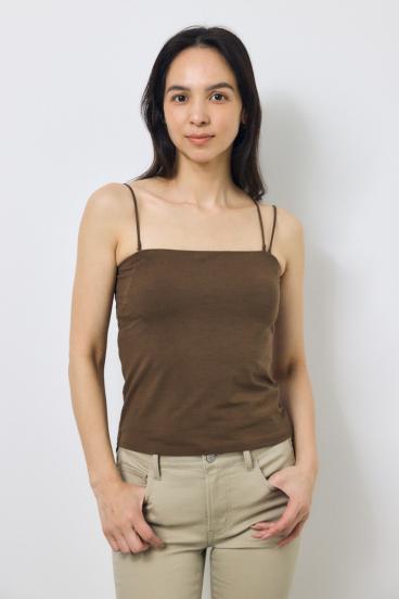 シャツやシアートップス、カーディガンのインナーとしてはもちろん、ジャケットのインナーに合わせたヘルシーな肌見せスタイルもおすすめ。