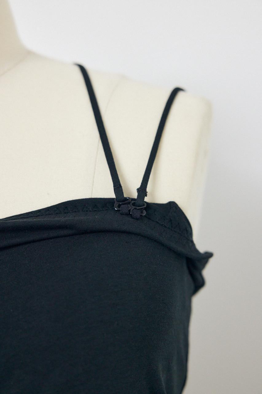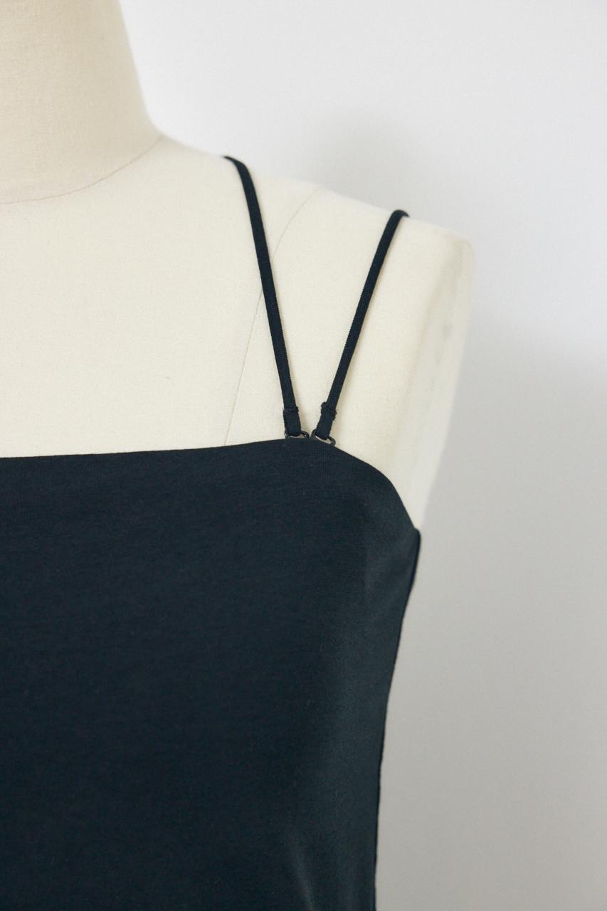 シャツやシアートップス、カーディガンのインナーとしてはもちろん、ジャケットのインナーに合わせたヘルシーな肌見せスタイルもおすすめ。
