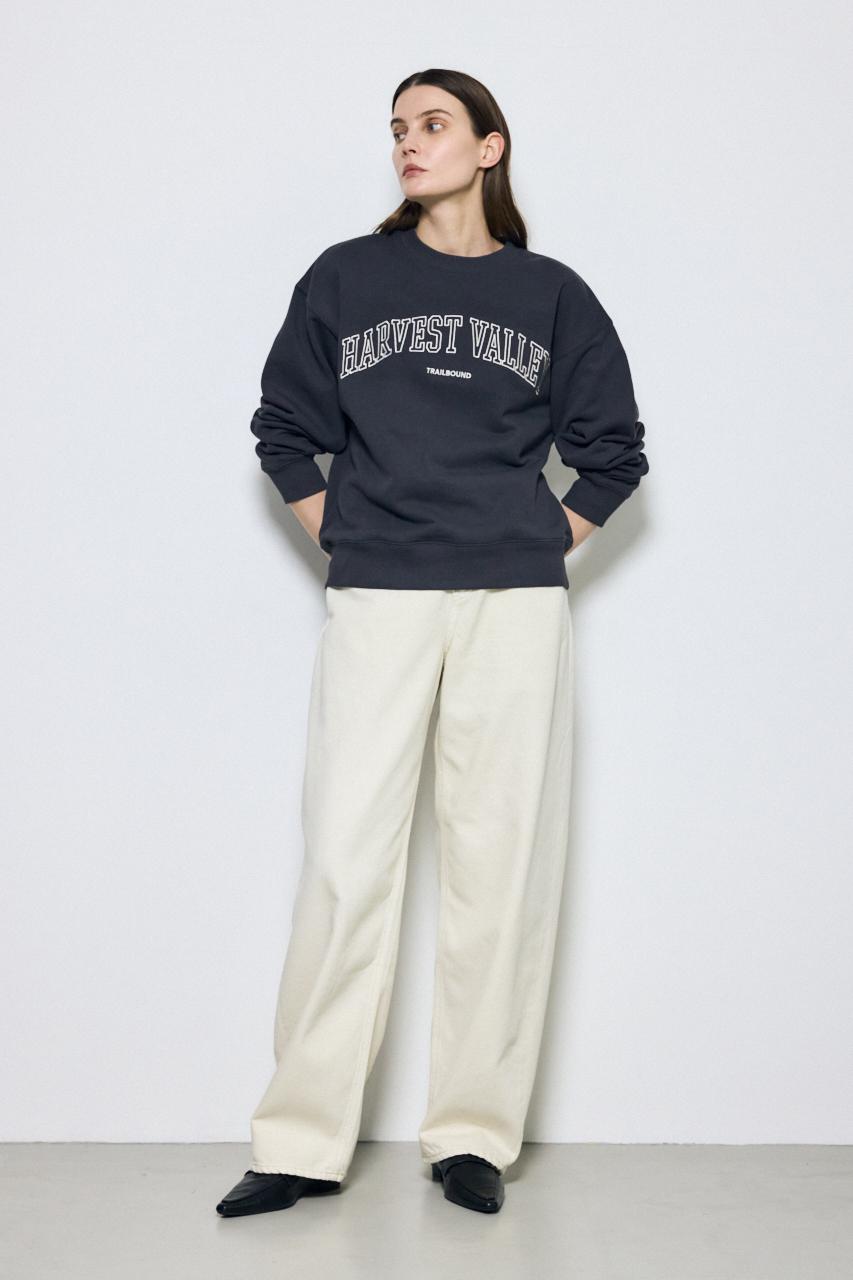 カレッジロゴが目をひく、程よくラフな印象のスウェットトップス。