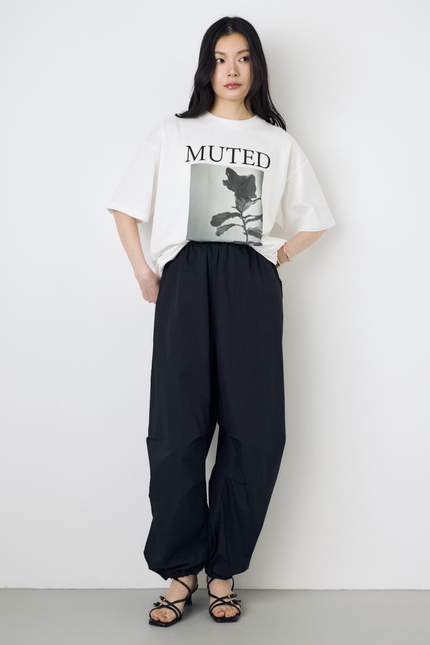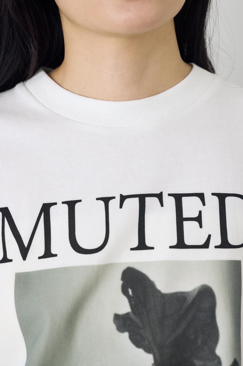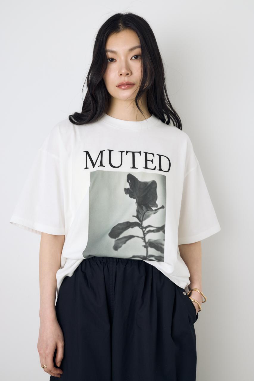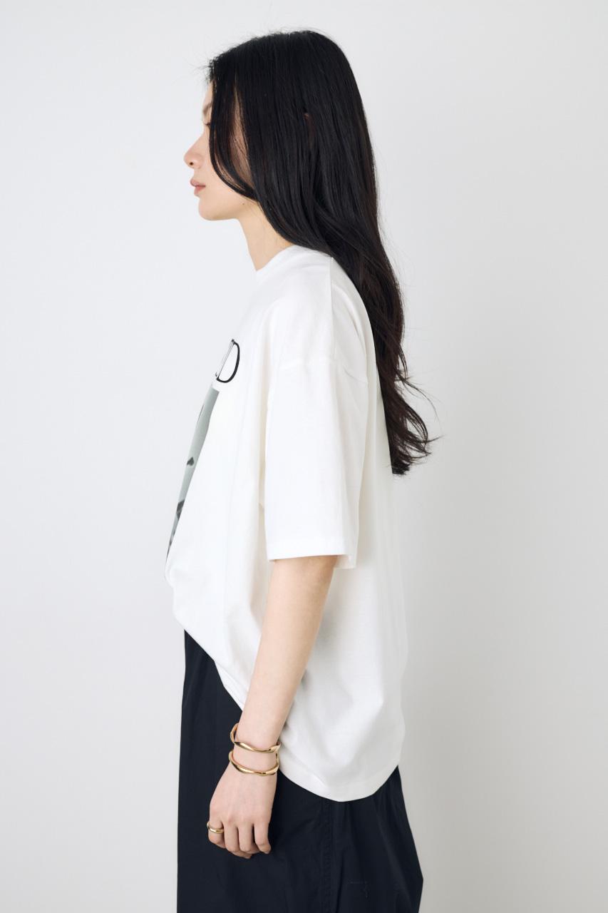 存在感のあるフォトプリントが目をひく、モード感のあるプリントTシャツ。