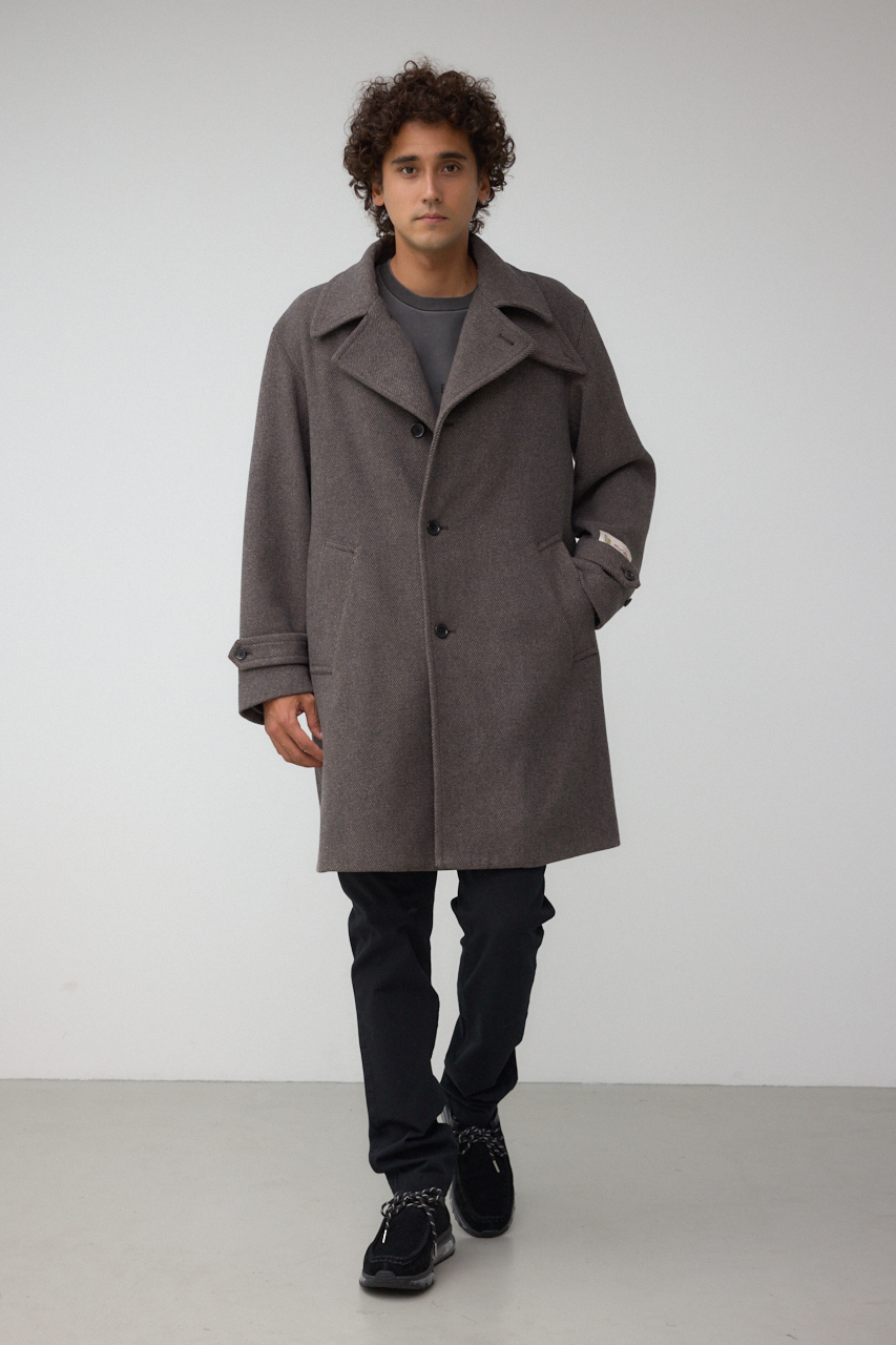 ウール混の素材を使用したキレイめなステンカラーコートになります。