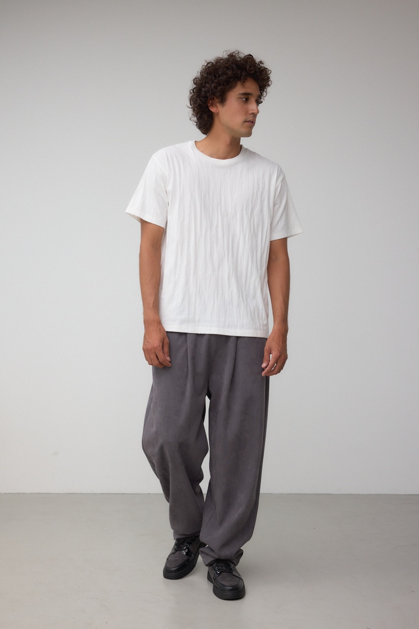 微光沢感のあるフェイクスエードを使用した高級感あふれるキレイ目パンツになります。