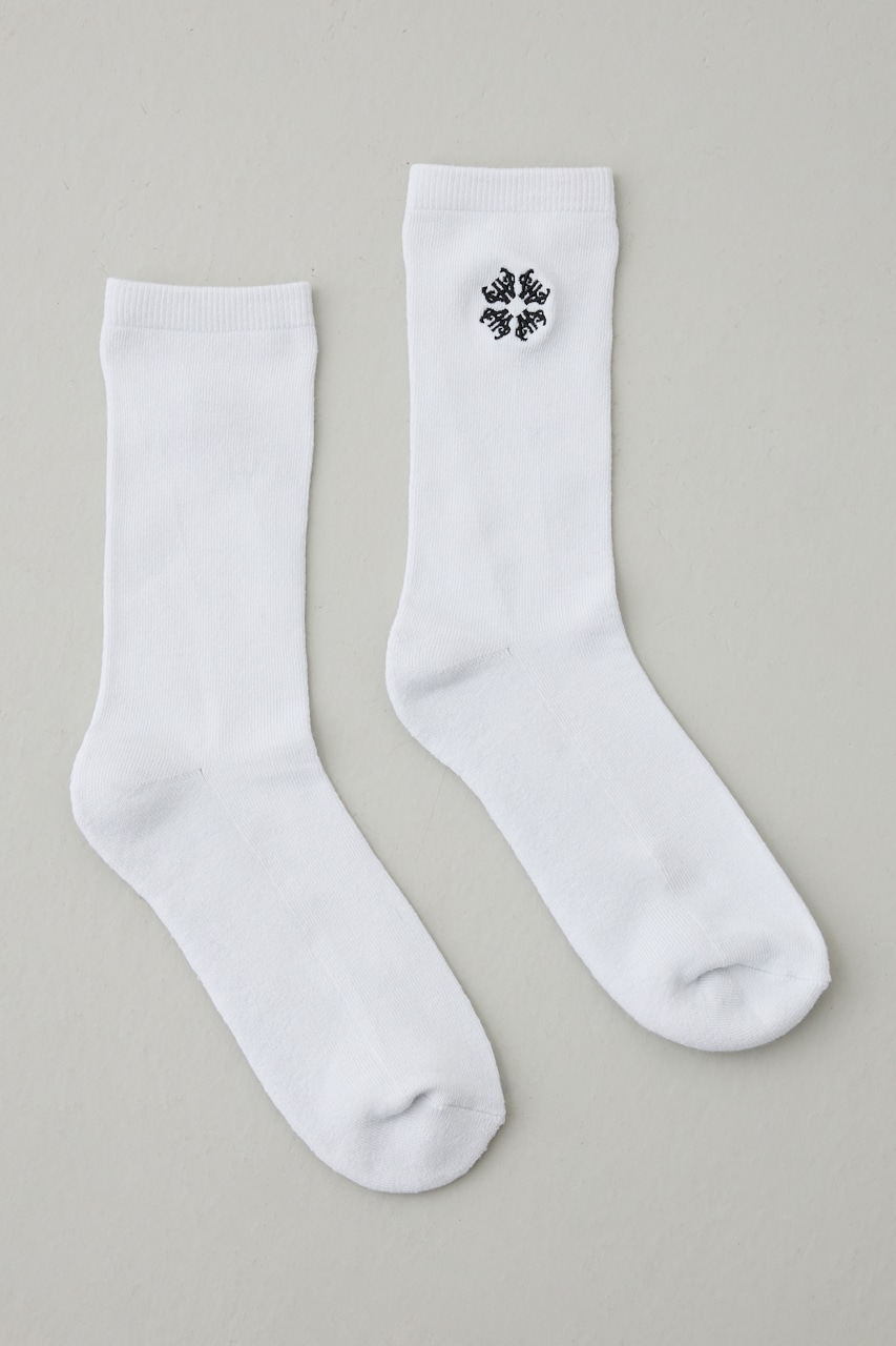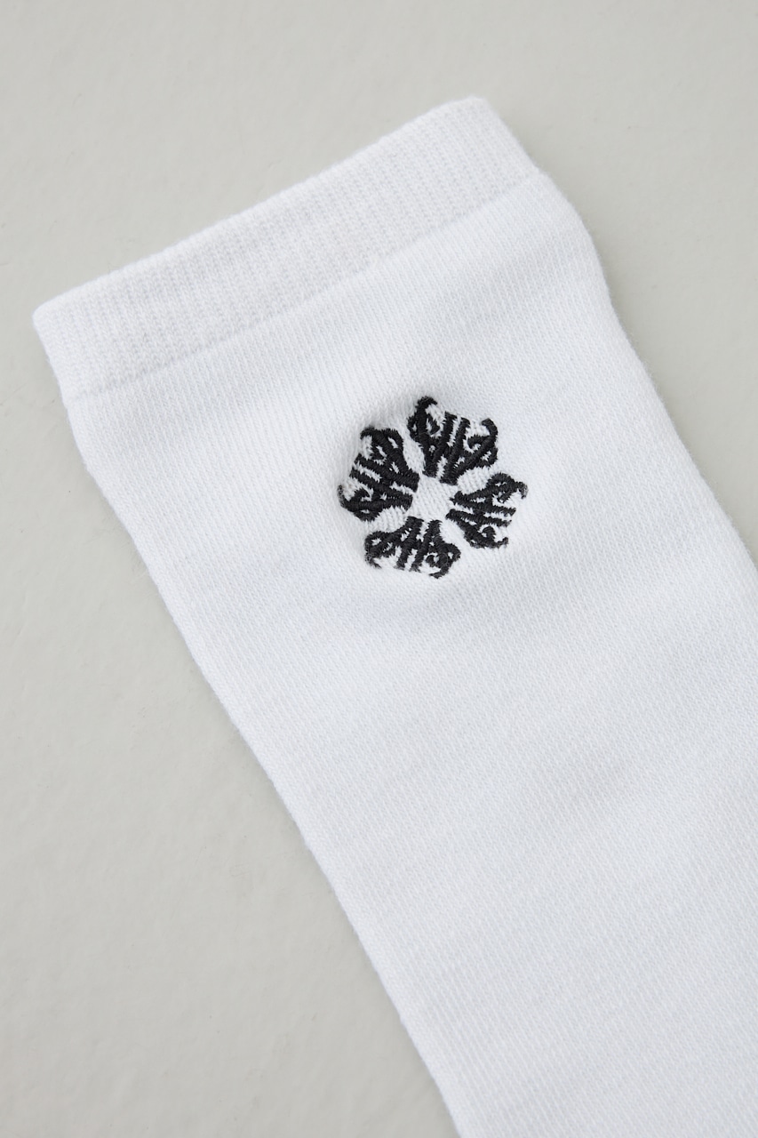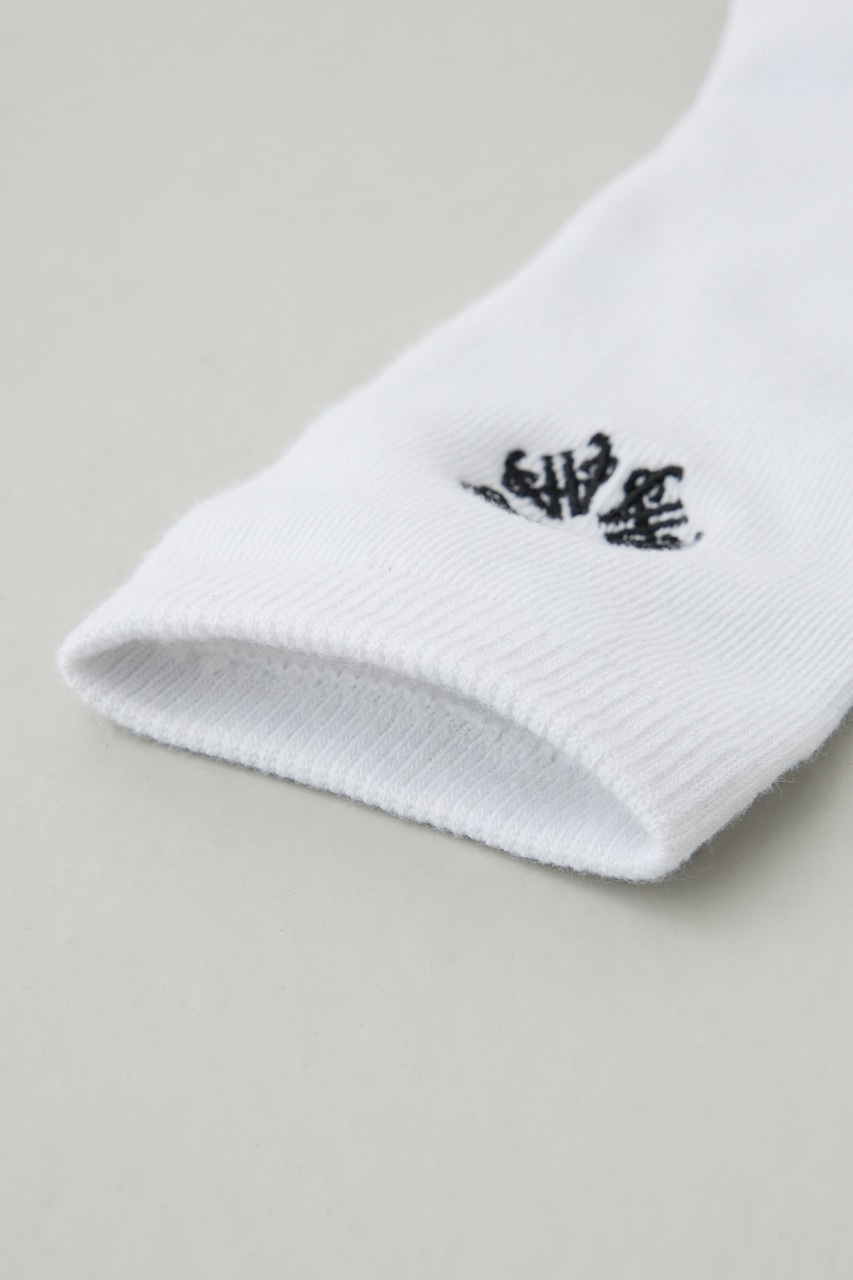 履き口付近にワンポイント刺繍を配し、控えめながらアクセントになるデザイン。