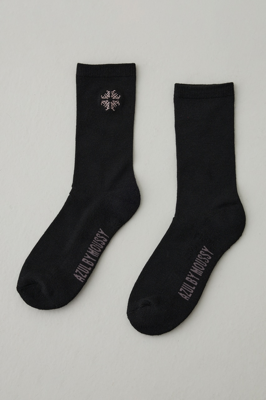 履き口付近にワンポイント刺繍を配し、控えめながらアクセントになるデザイン。