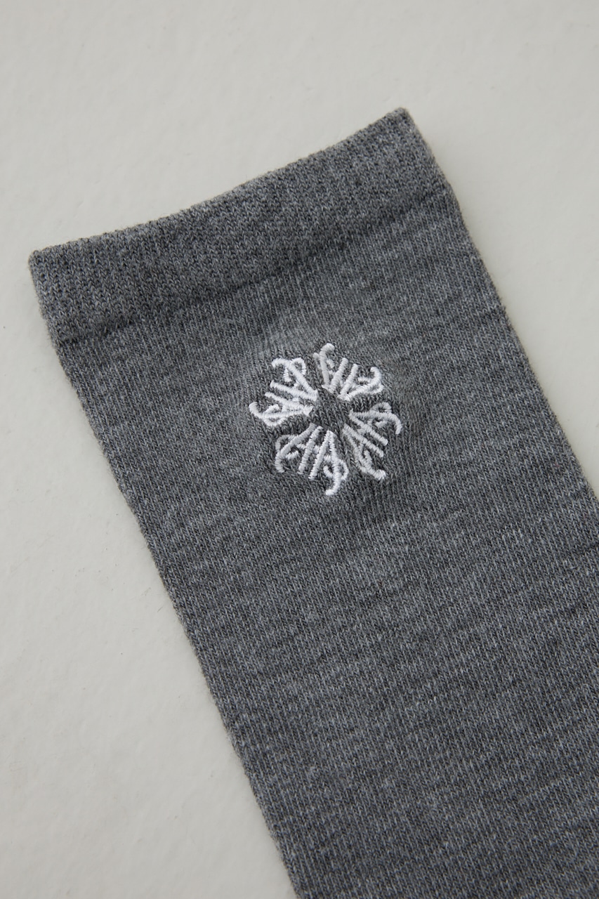 履き口付近にワンポイント刺繍を配し、控えめながらアクセントになるデザイン。