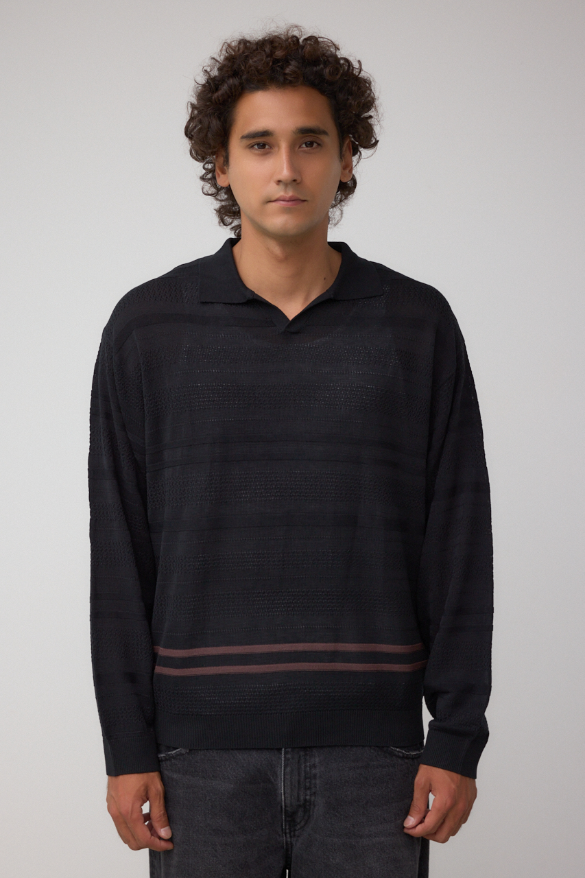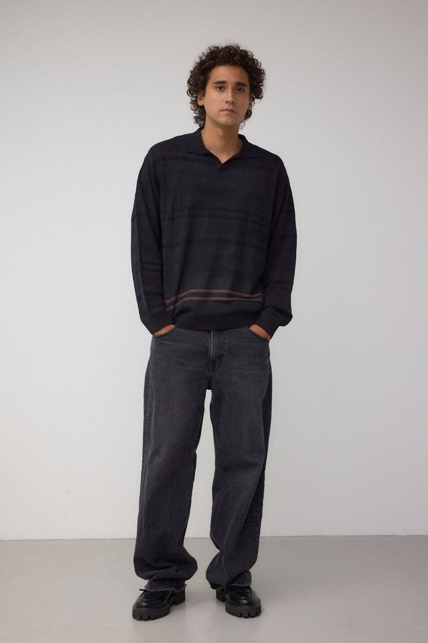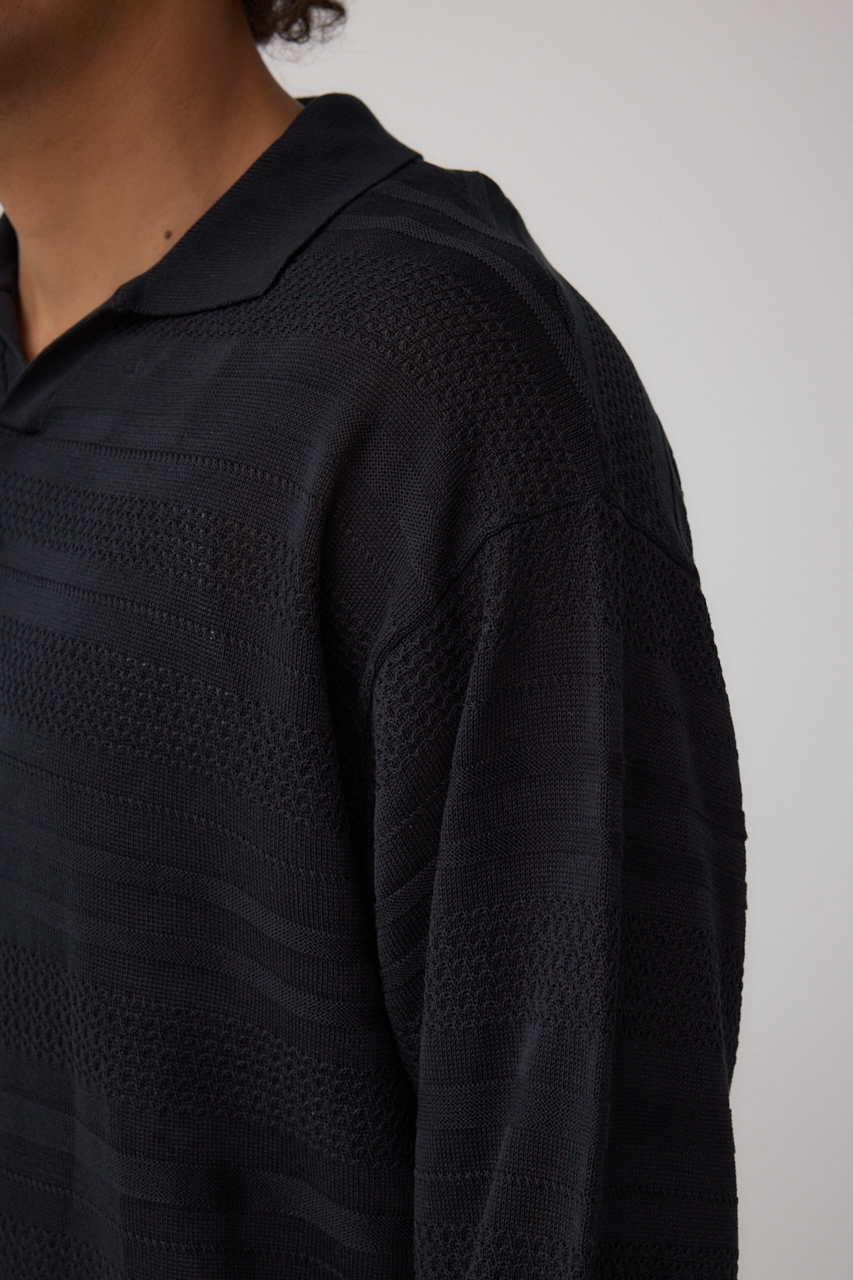 地柄とボーダーの編み切り替えでAZULらしいデザインに。