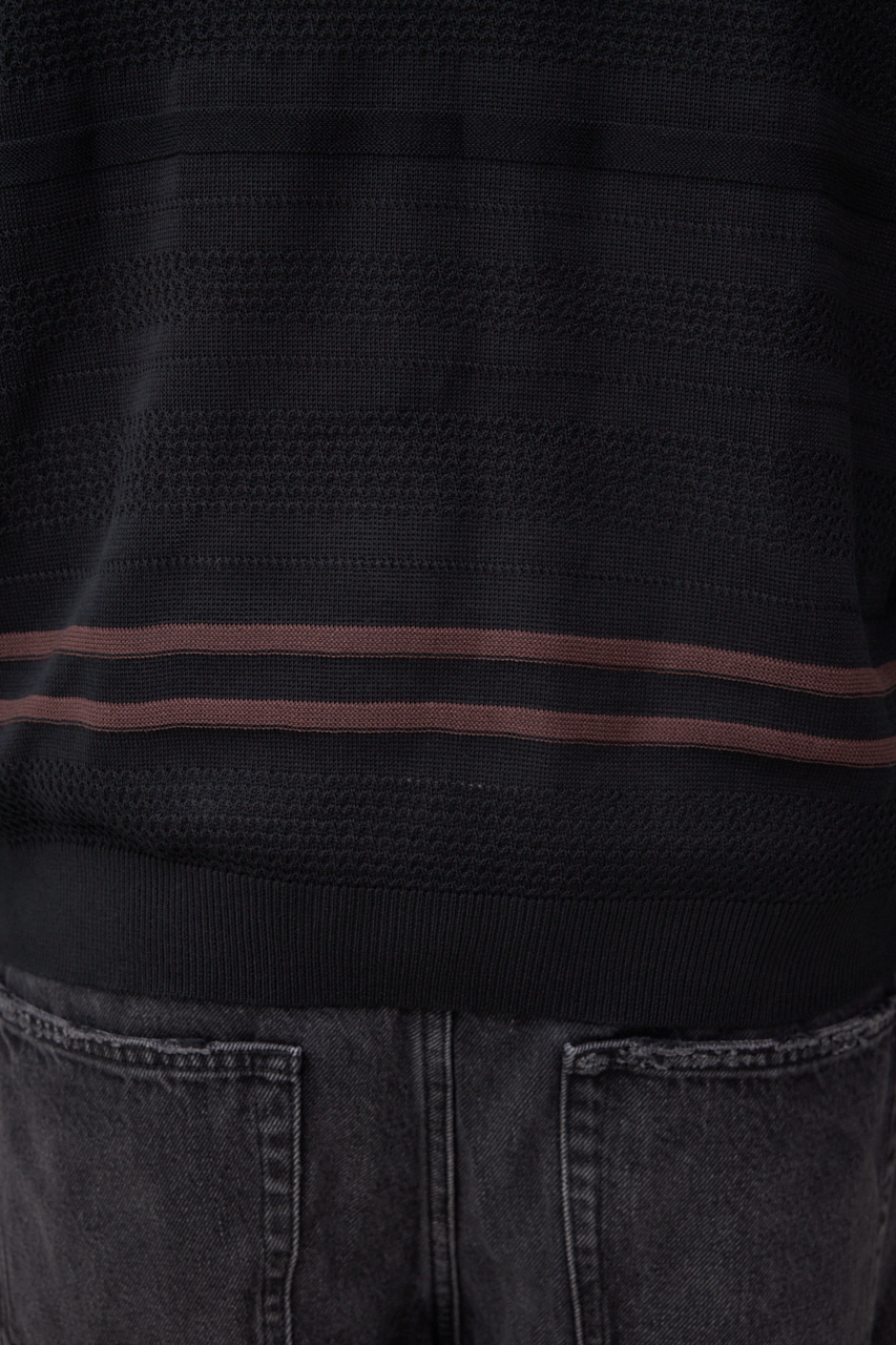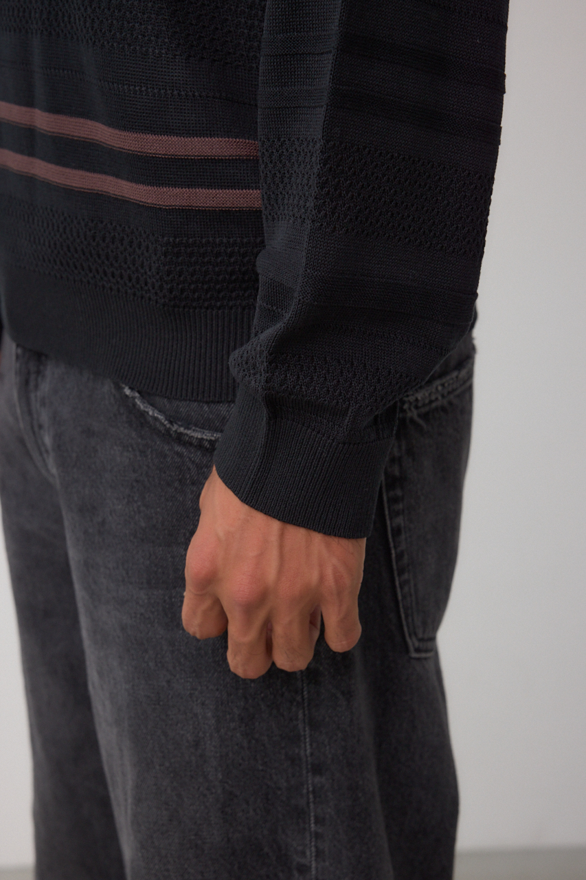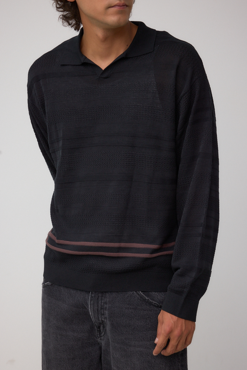 地柄とボーダーの編み切り替えでAZULらしいデザインに。