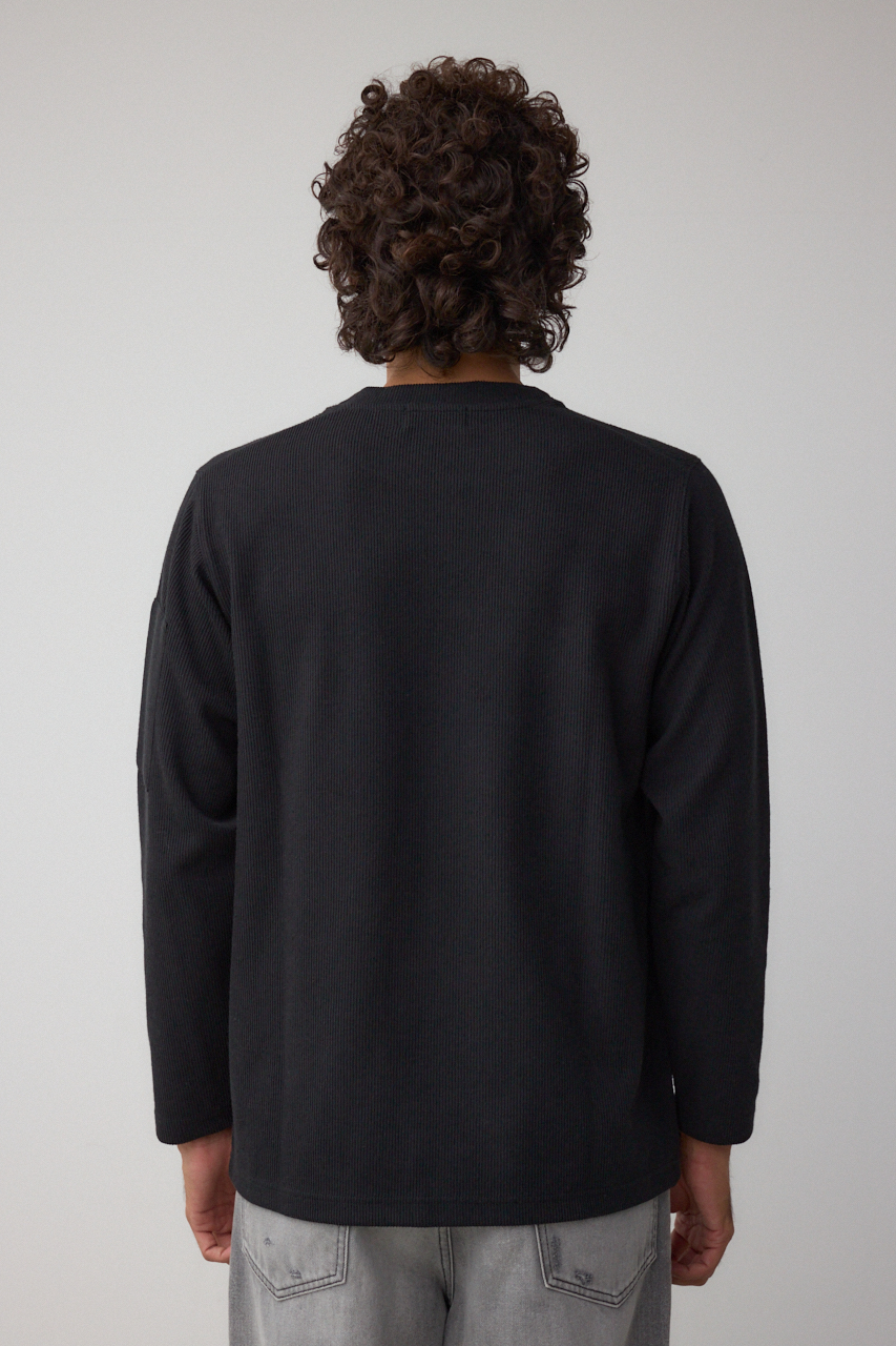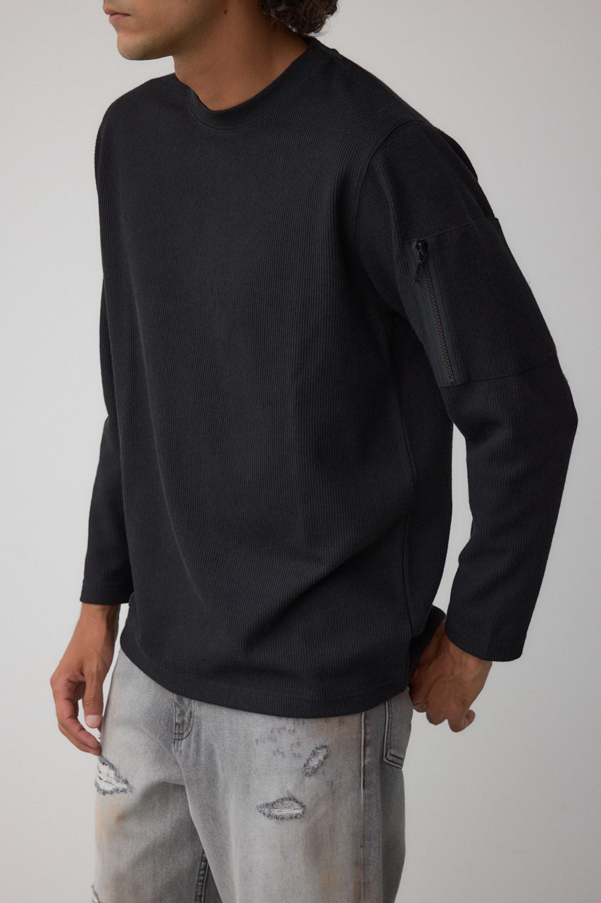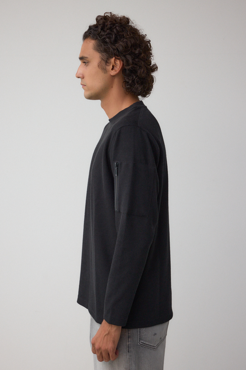 メランジ感のあるリブ見えジャガード編みで表情を出した長袖トップスになります。