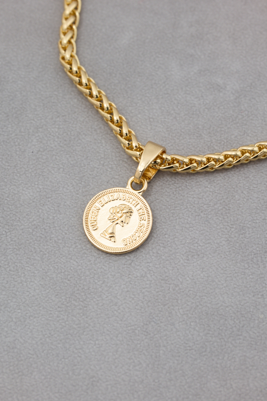 ツイストチェーンにコイントップをあしらったネックレスになります。