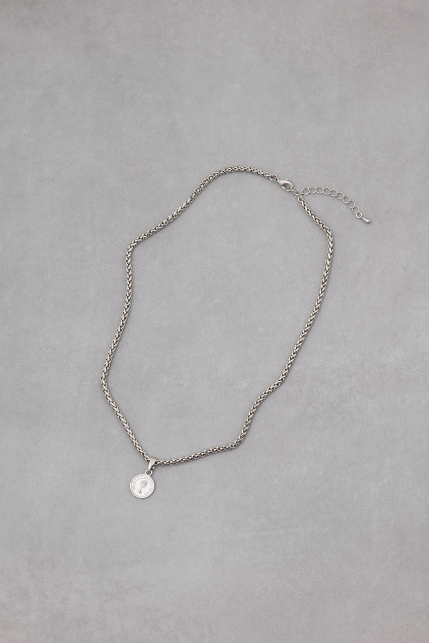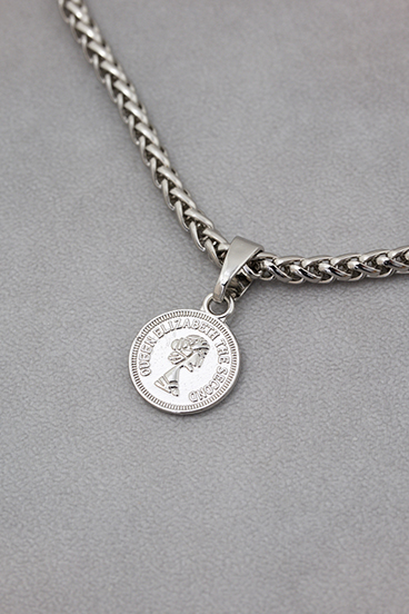 ツイストチェーンにコイントップをあしらったネックレスになります。