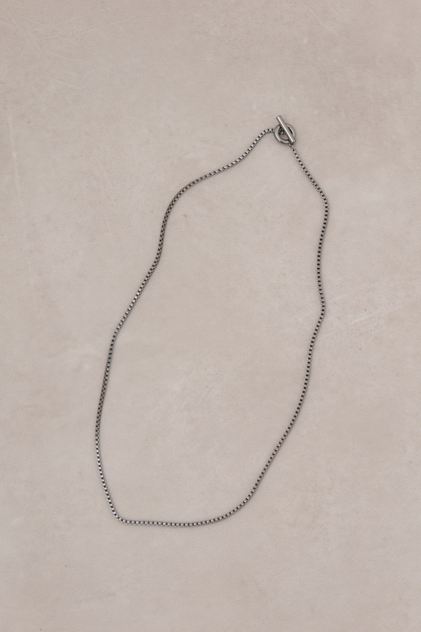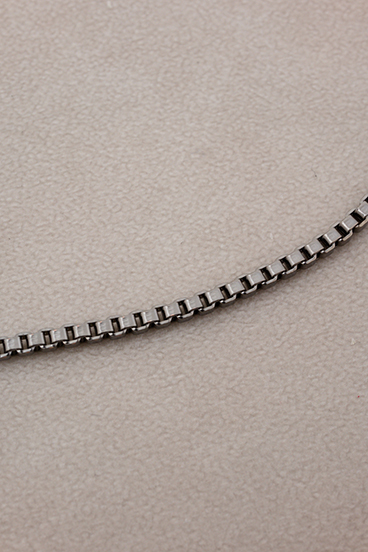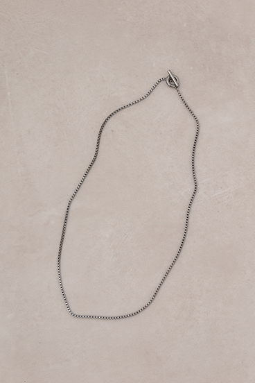 四角いパーツを交互に組み合わせて仕上げたアイテム。細めなデザインなので、首元をすっきり見せてくれます。