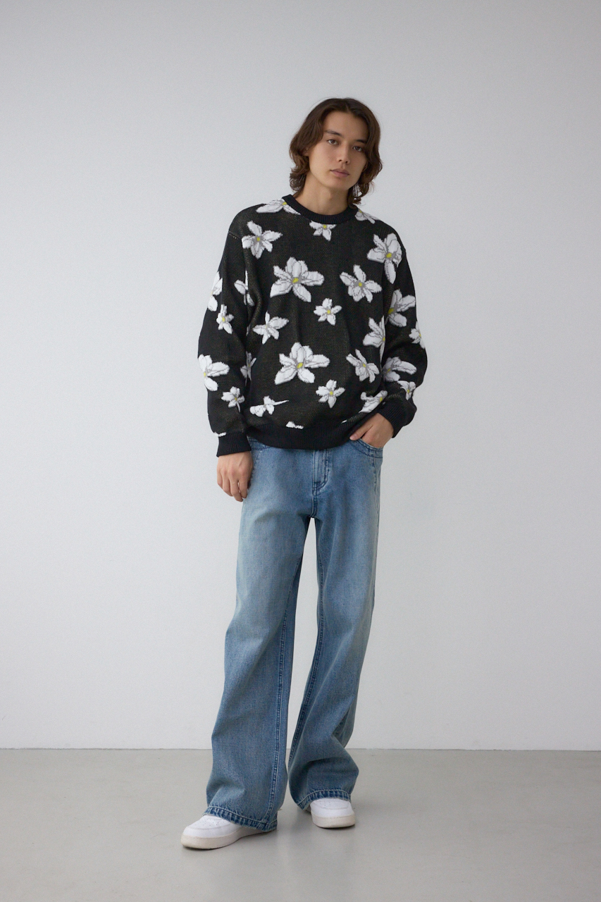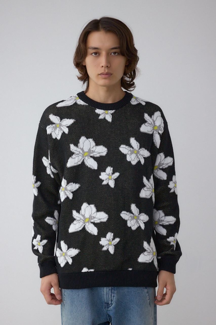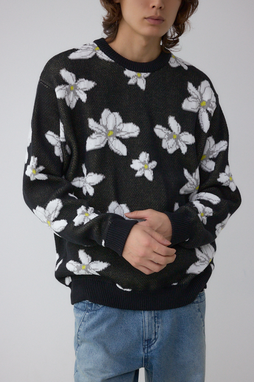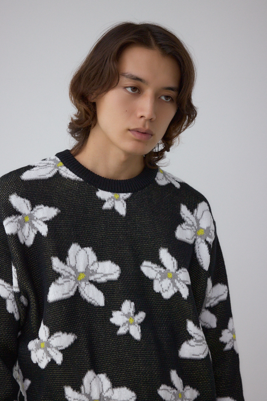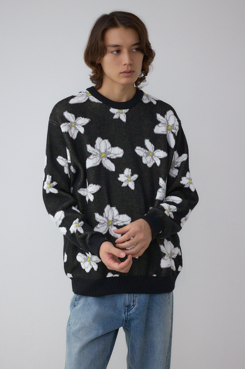 柄BLK・柄WHT・柄GRYの3色展開で、単品で主役になるニットです。