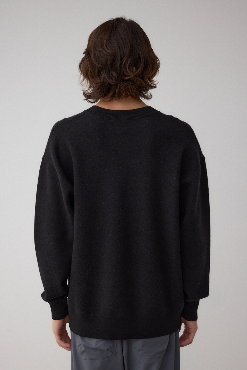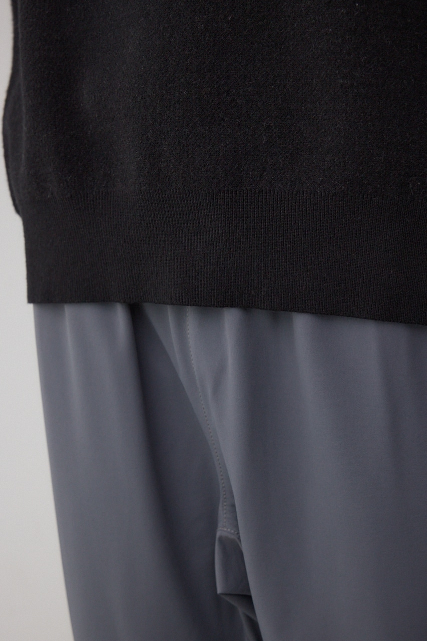 細いラメを編み込み柔らかな光沢を出しつつ、Wジャガードで表情を持たせた上品なカジュアルアイテム。