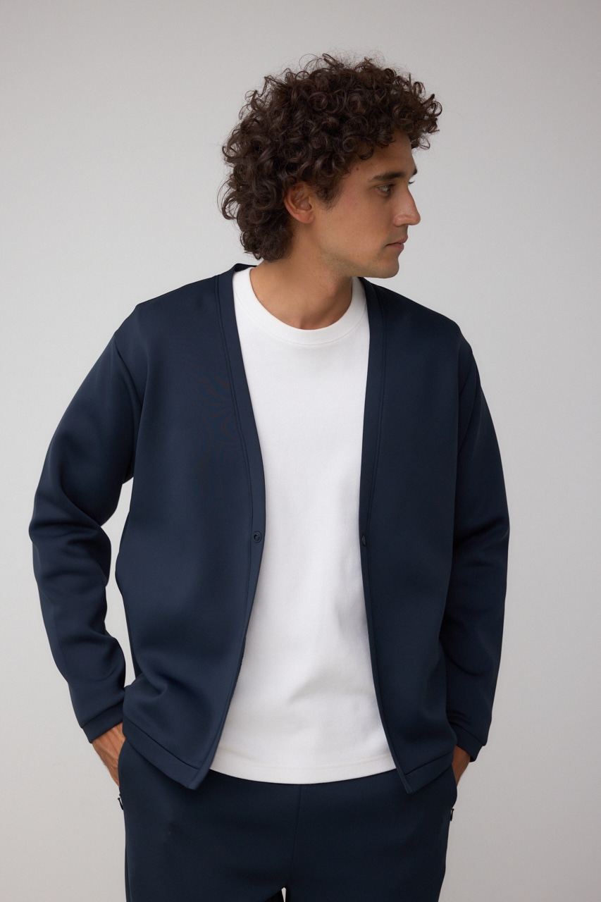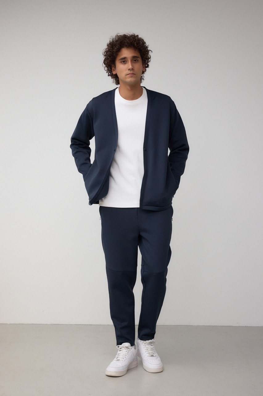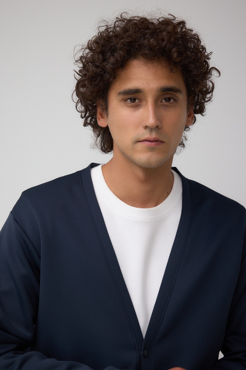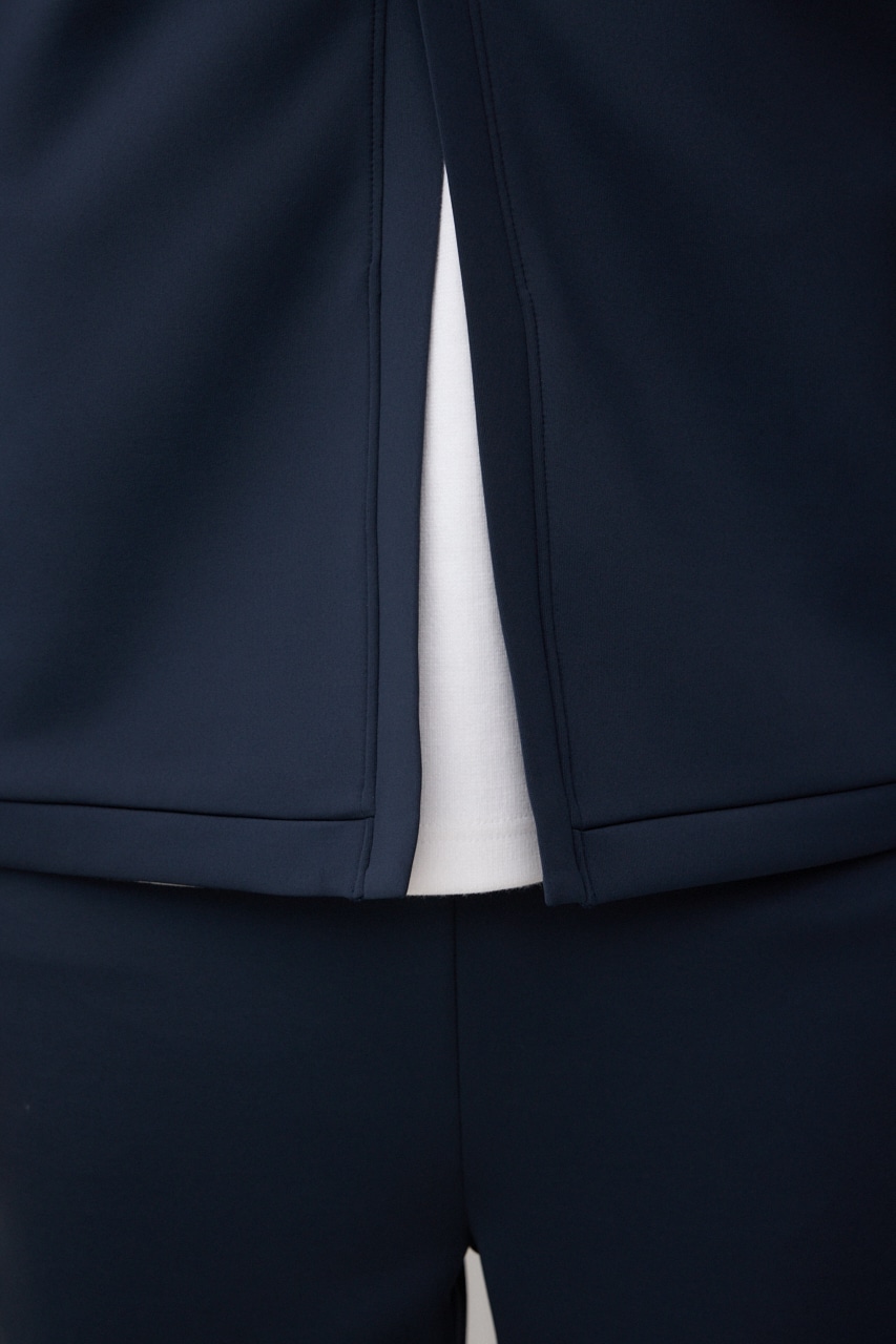 色々なボトムスに合いますが、同素材パンツ(251IAC81-0231ダブルニットスリムパンツ)とのセットアップがおすすめです。
