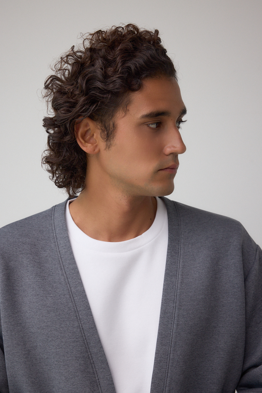 色々なボトムスに合いますが、同素材パンツ(251IAC81-0231ダブルニットスリムパンツ)とのセットアップがおすすめです。