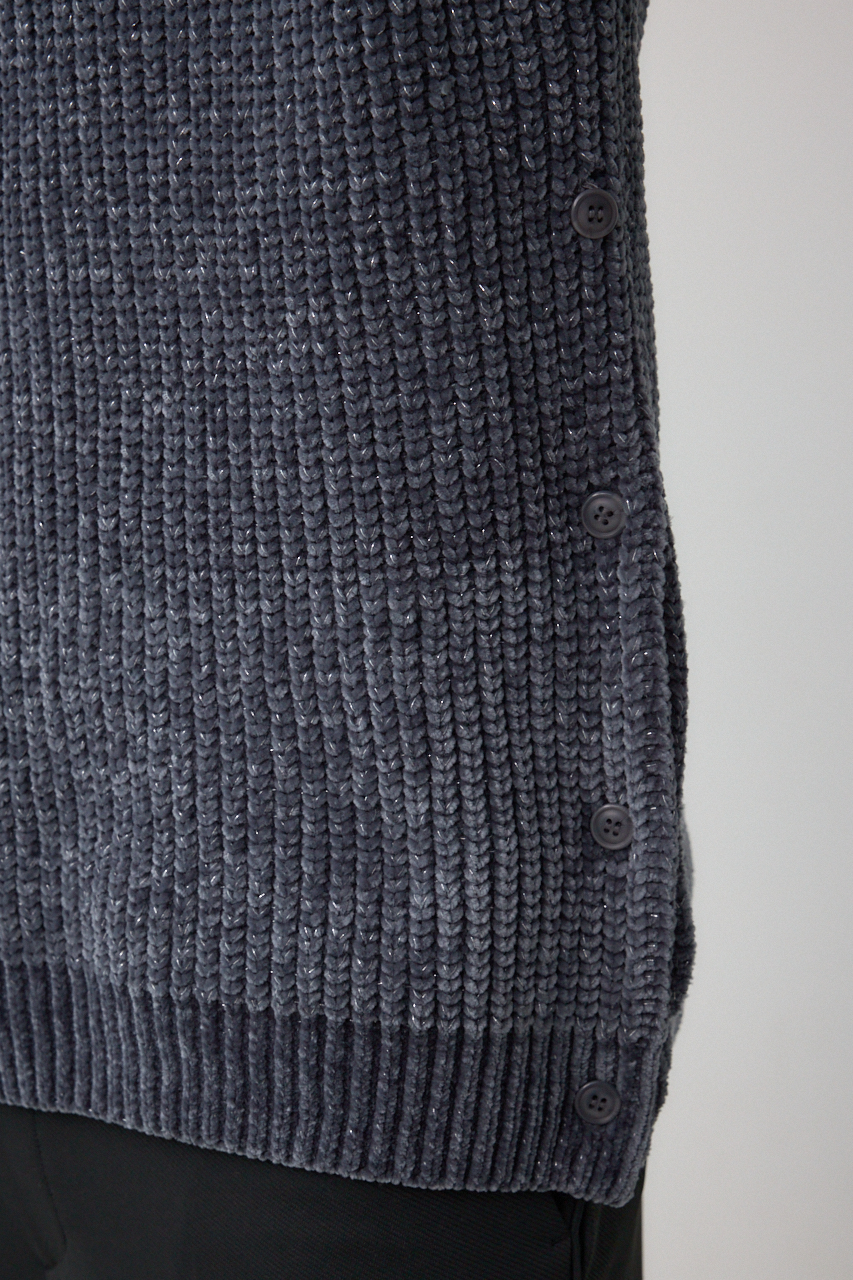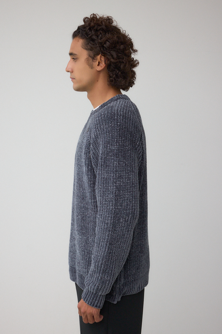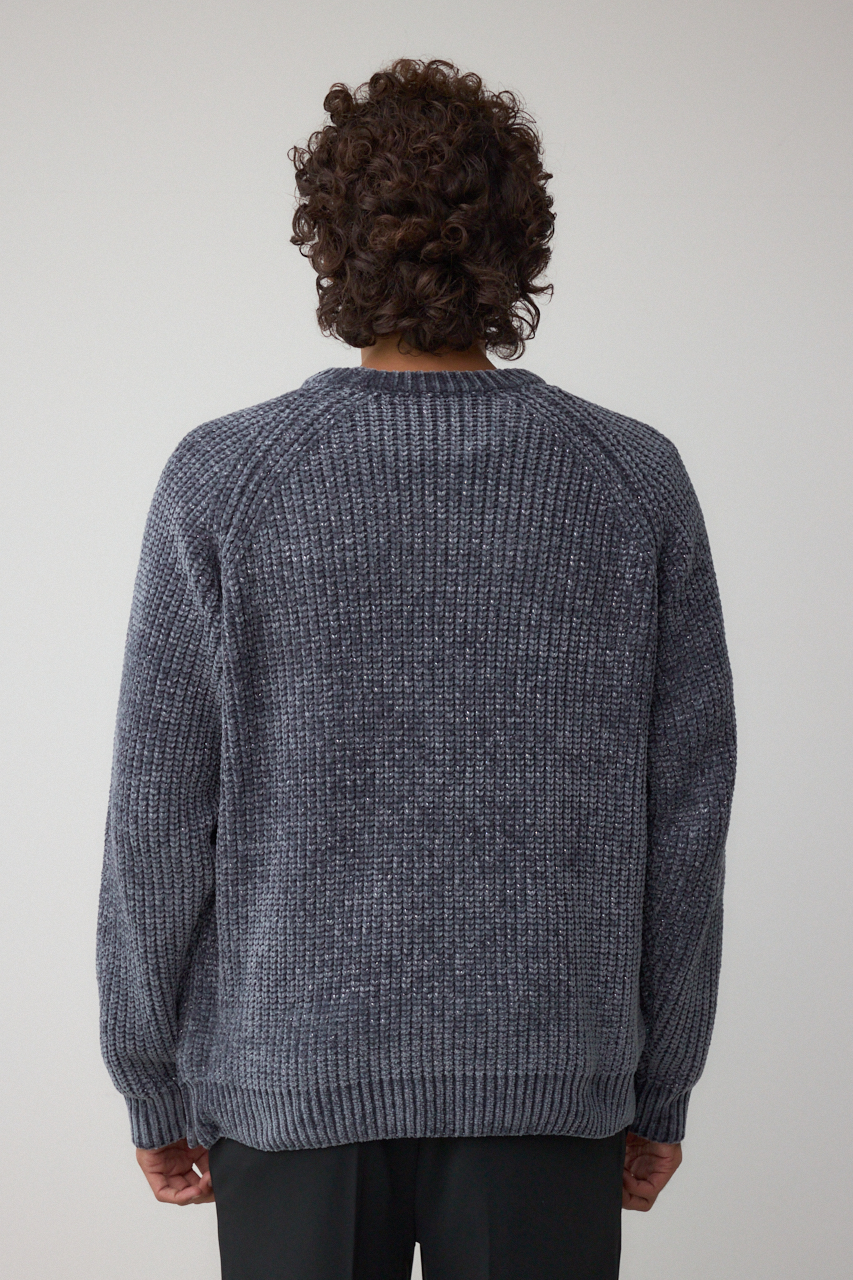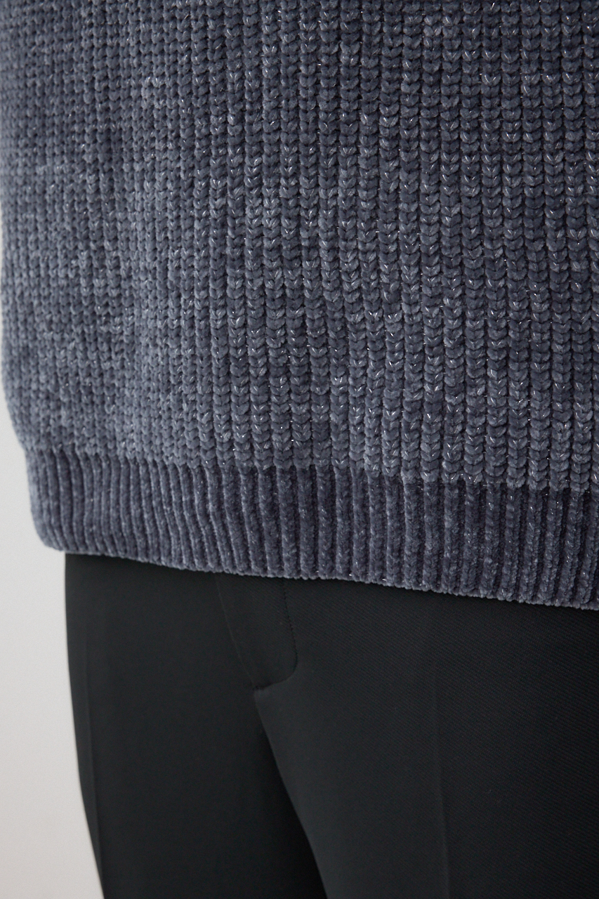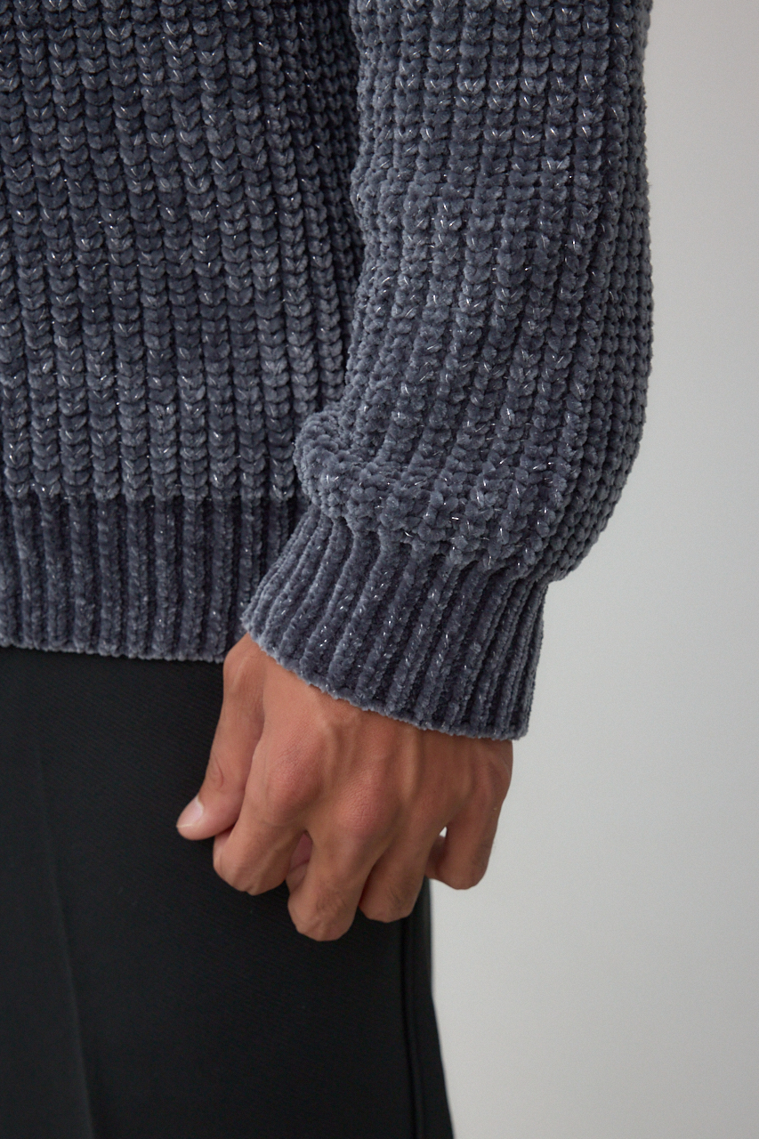 ベロア調モール糸にラメを引き揃えた光沢あるニットです。
