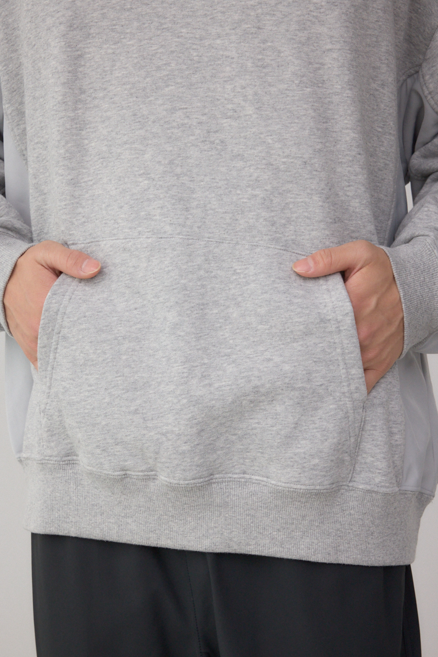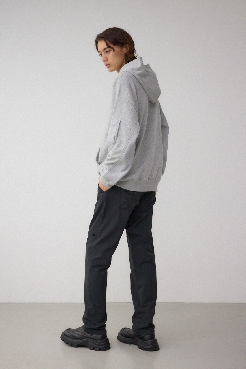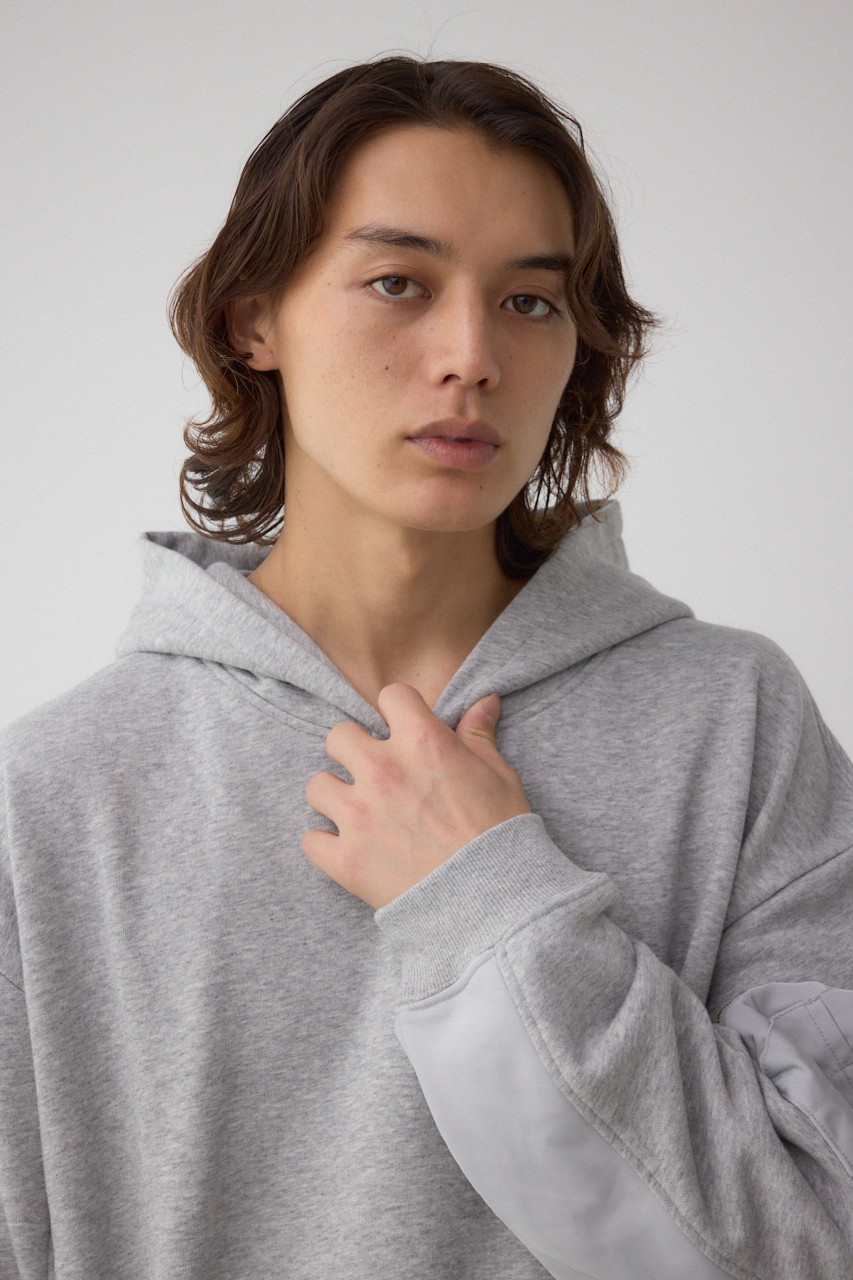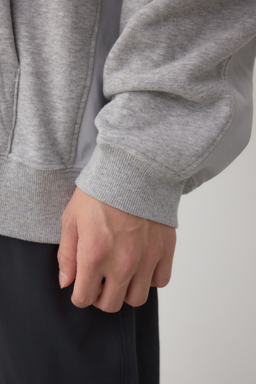 裏毛のカジュアル感に光沢のある布帛をドッキングし、程よいモード感をプラス。