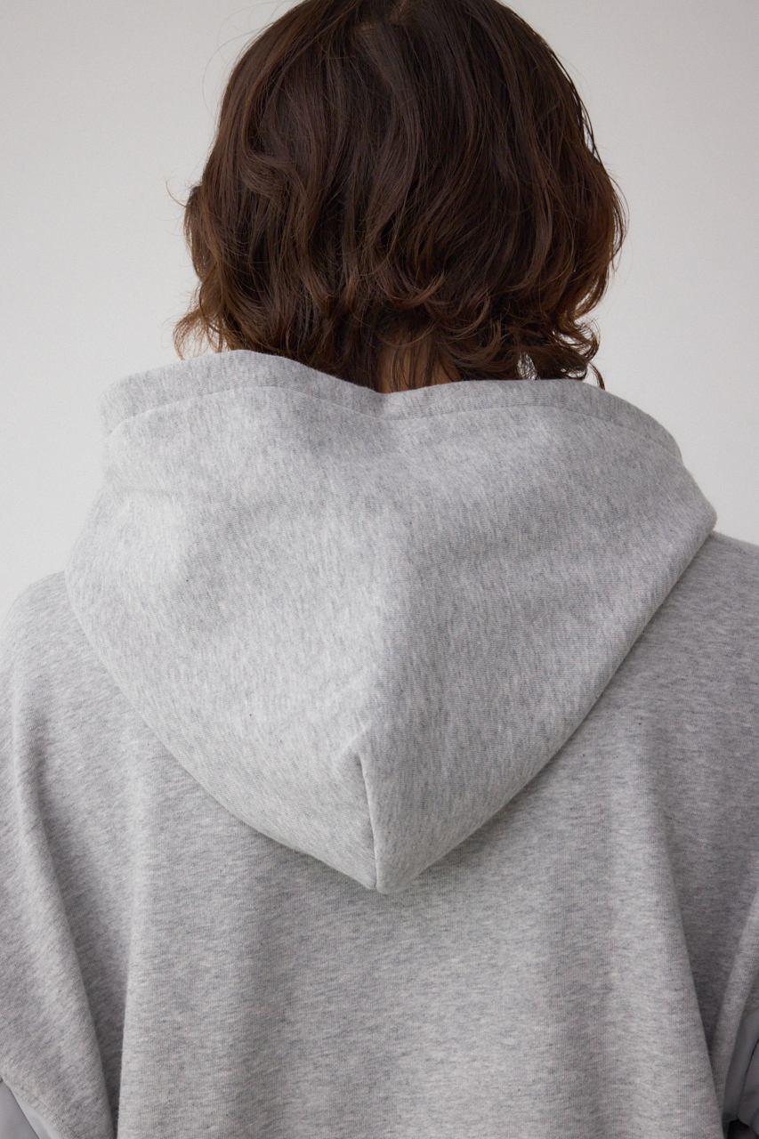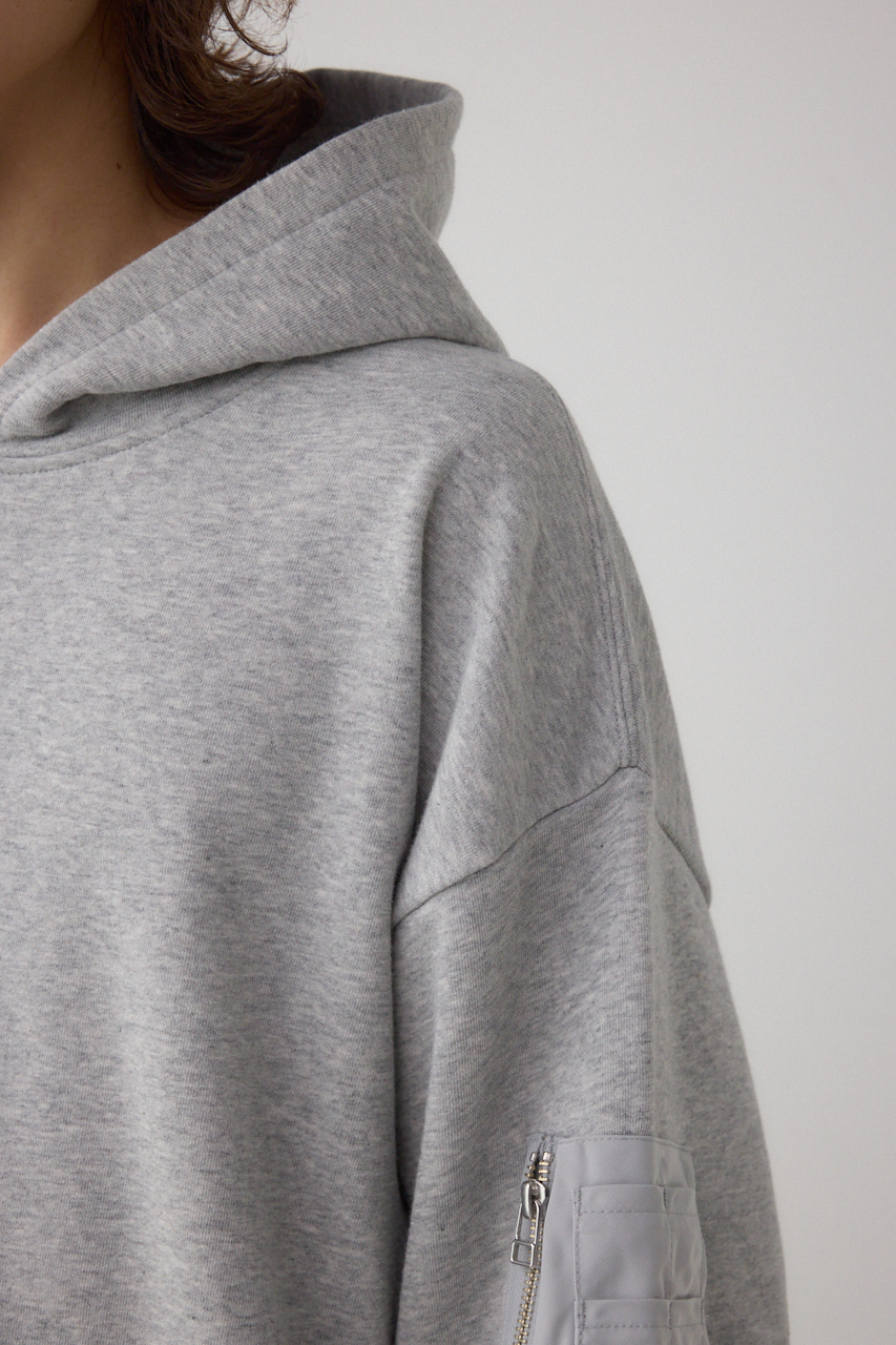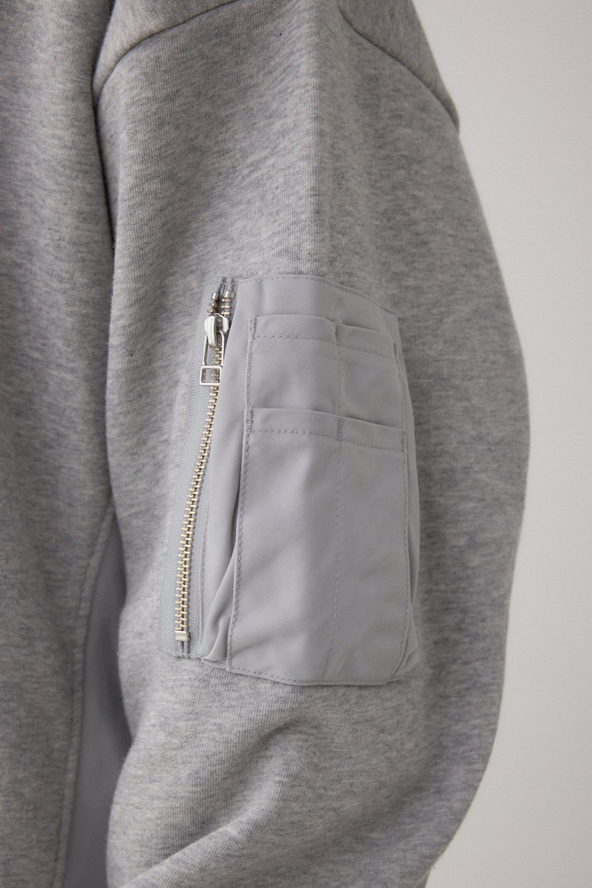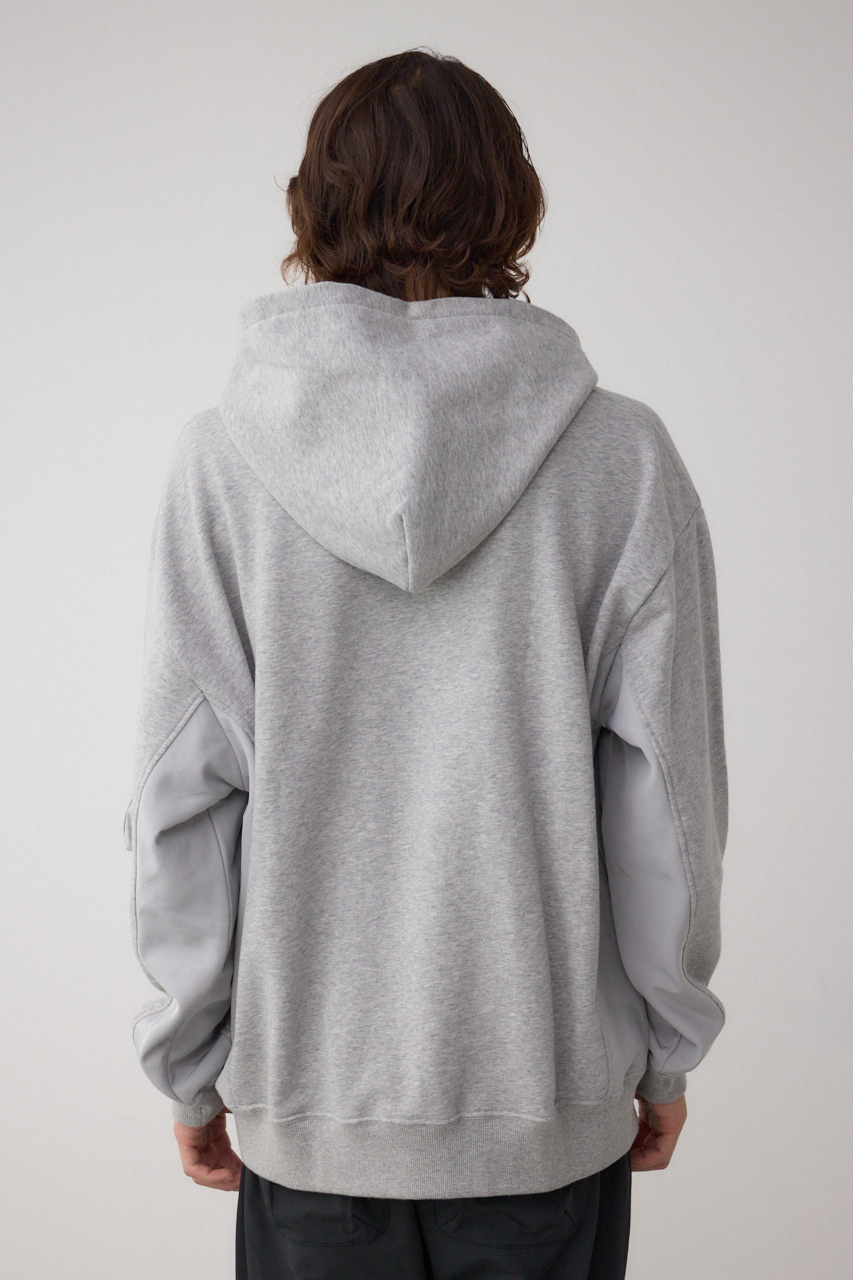 裏毛のカジュアル感に光沢のある布帛をドッキングし、程よいモード感をプラス。